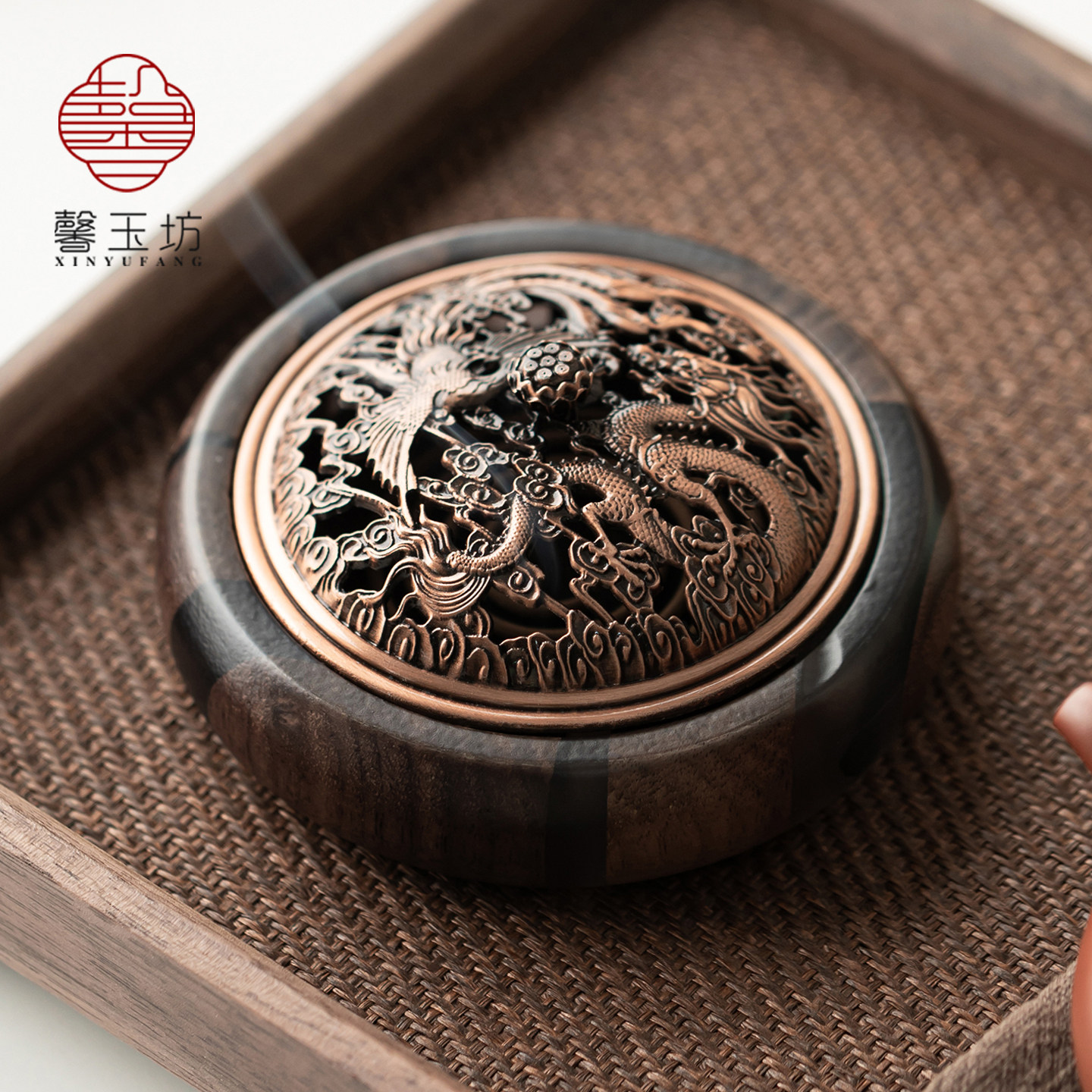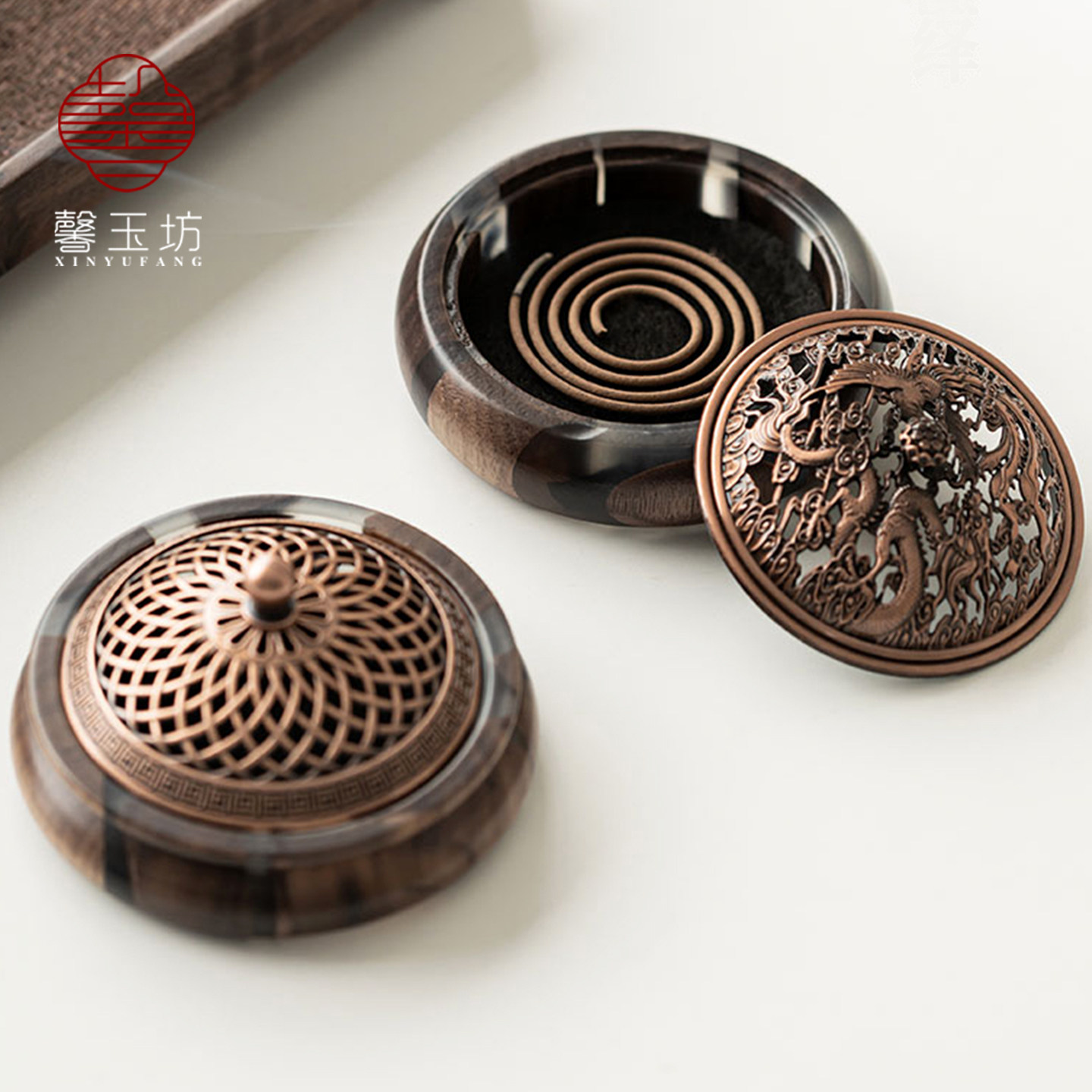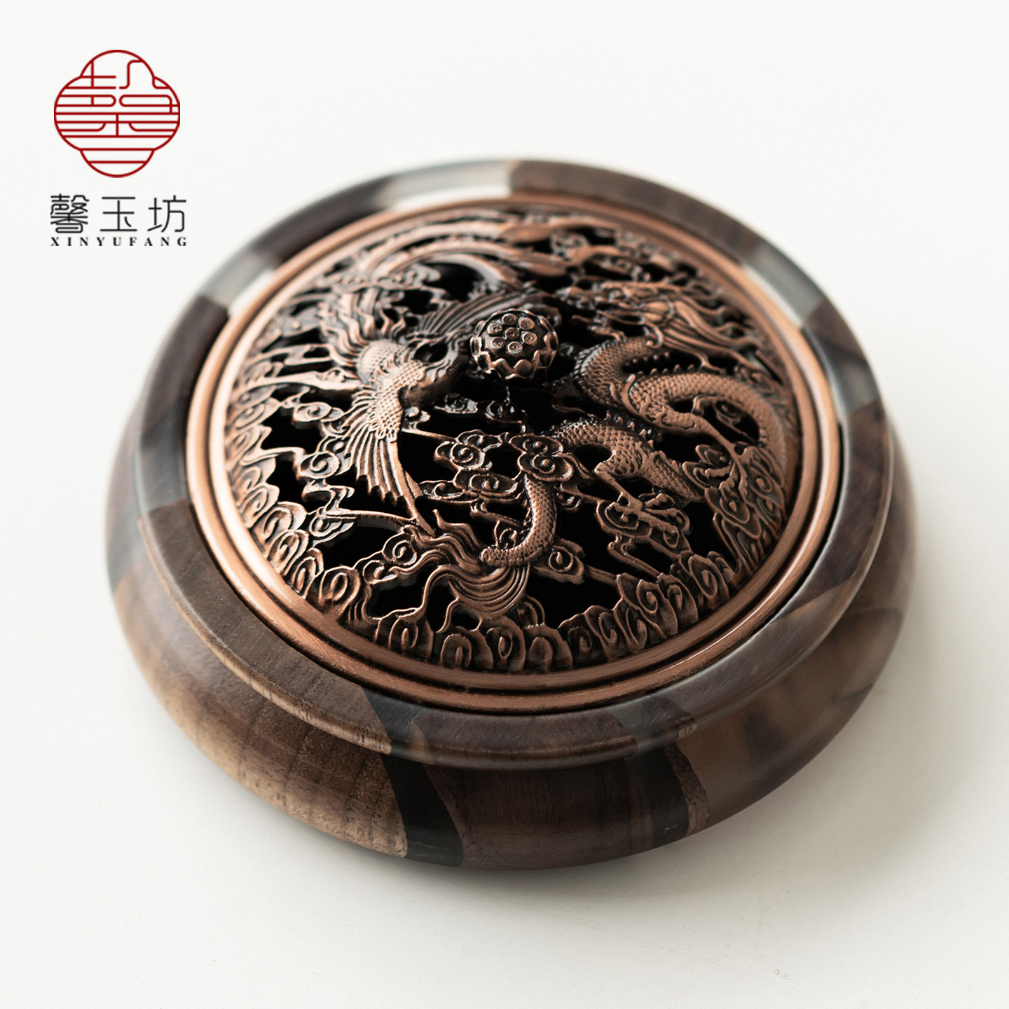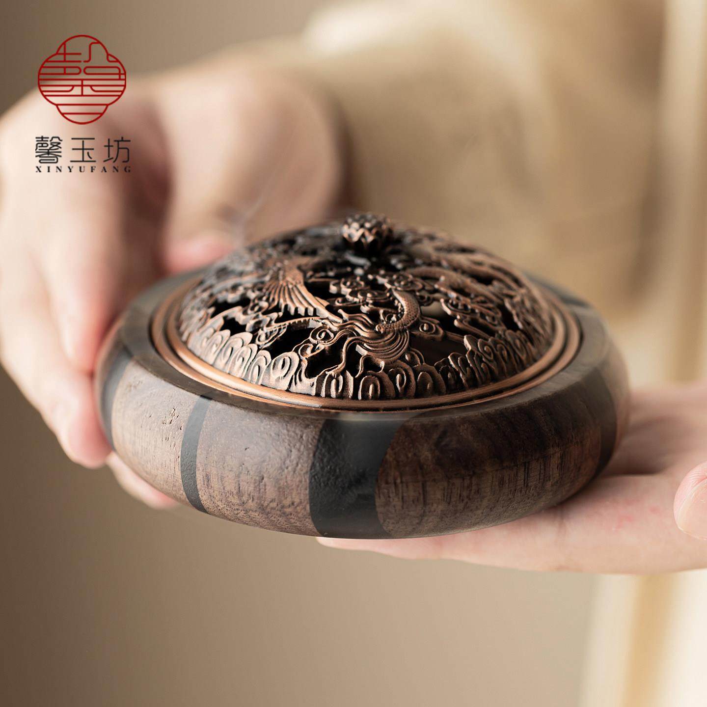📚 馨玉坊镂空盖黑胡桃木香炉家用高档香薰炉摆件盘香底座中式线香插