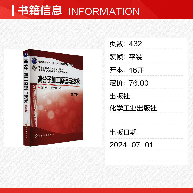 📚 高分子加工原理与技术 第二版 王小妹,阮文红 编 大学教材大中专 新华书店正版图书籍 化学工业出版社