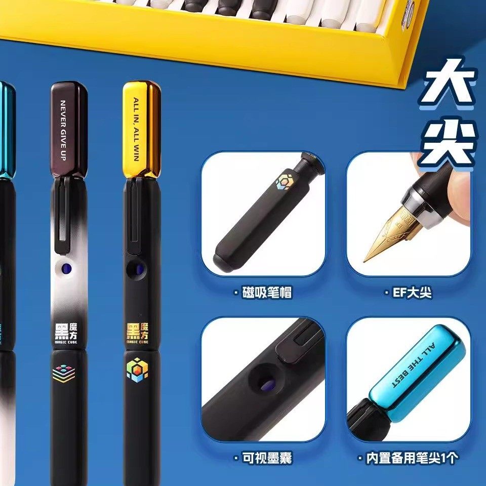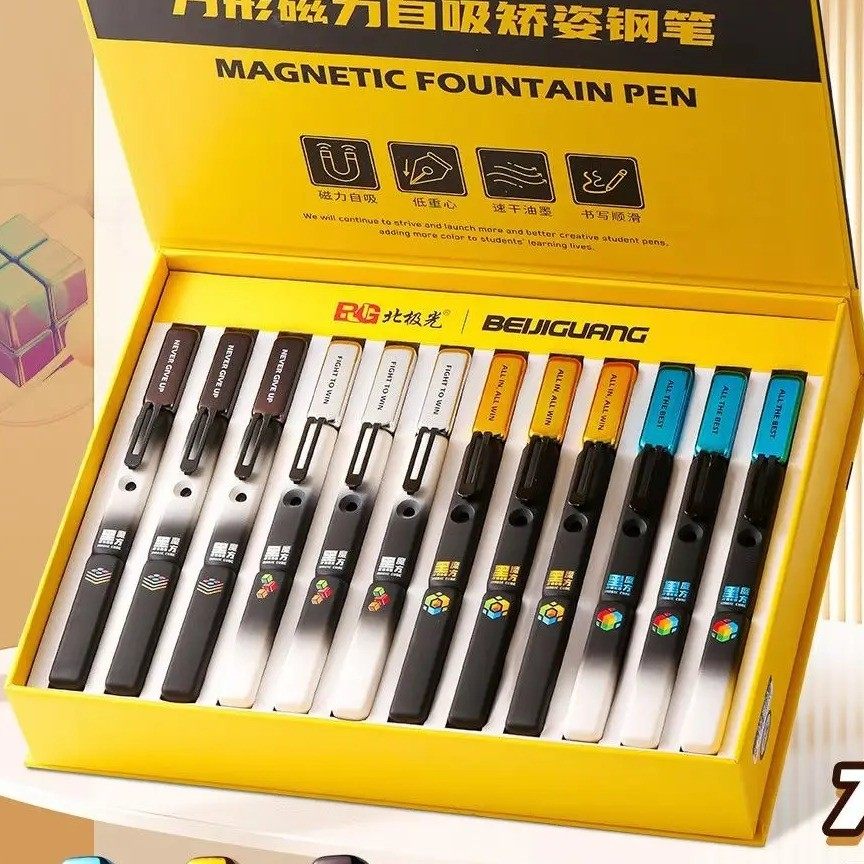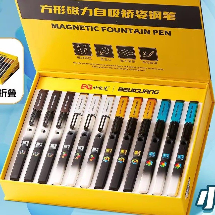 📚 北极光黑魔方磁吸低重心速干正姿学生练字魔液可擦EF细尖钢笔8607