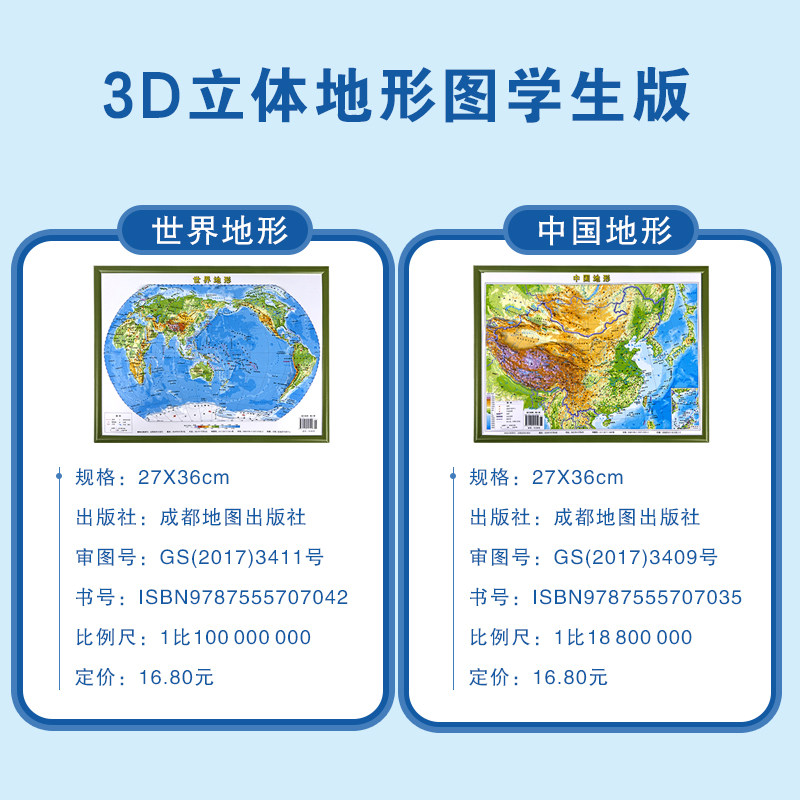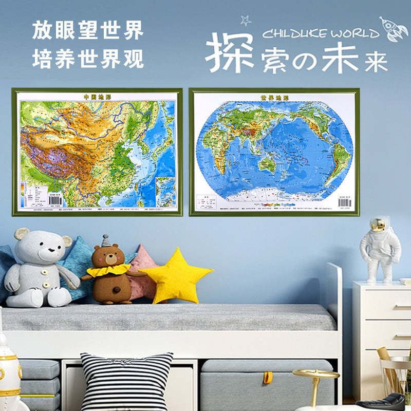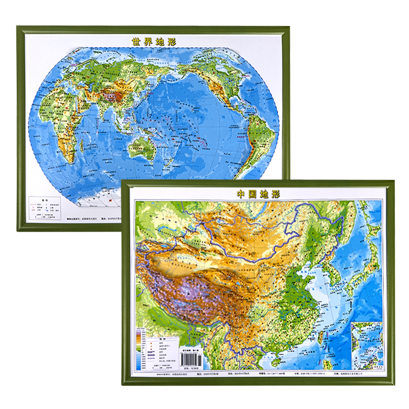 📚 地图2张便携式3d凹凸立体地图中国地图和世界地图学生专用地理地形图学生教学家用中学生三维地势地貌模型挂图北斗地图
