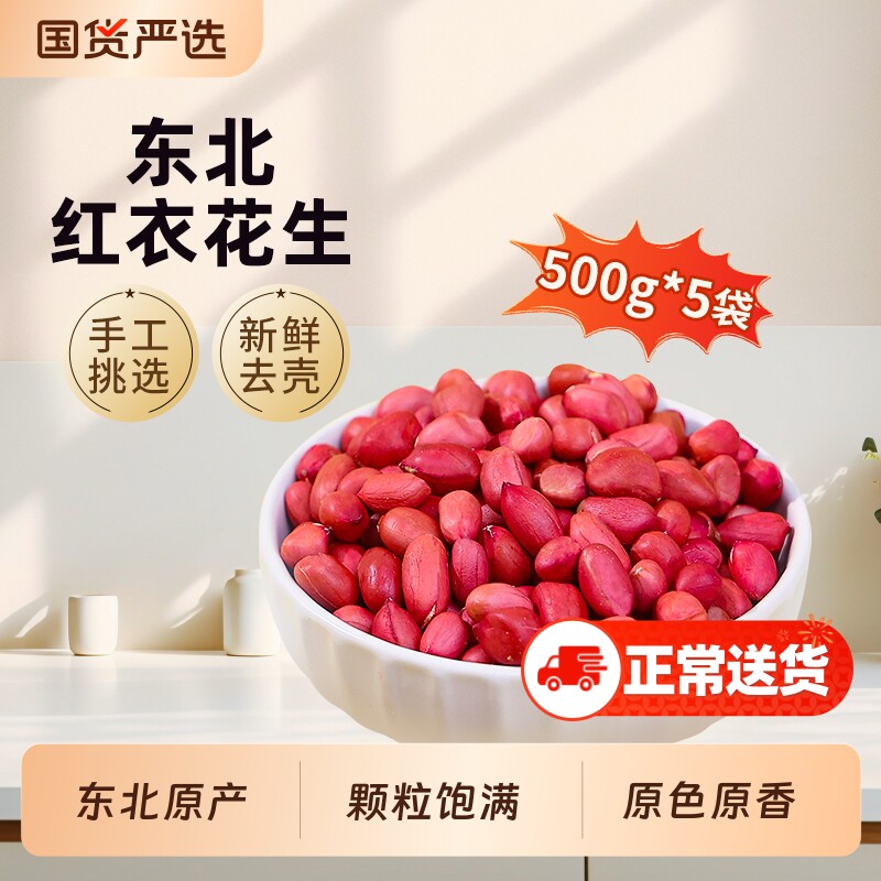 📚 东北红衣生花生米新货黑龙江特产四粒红新鲜红皮小粒生的五香健康