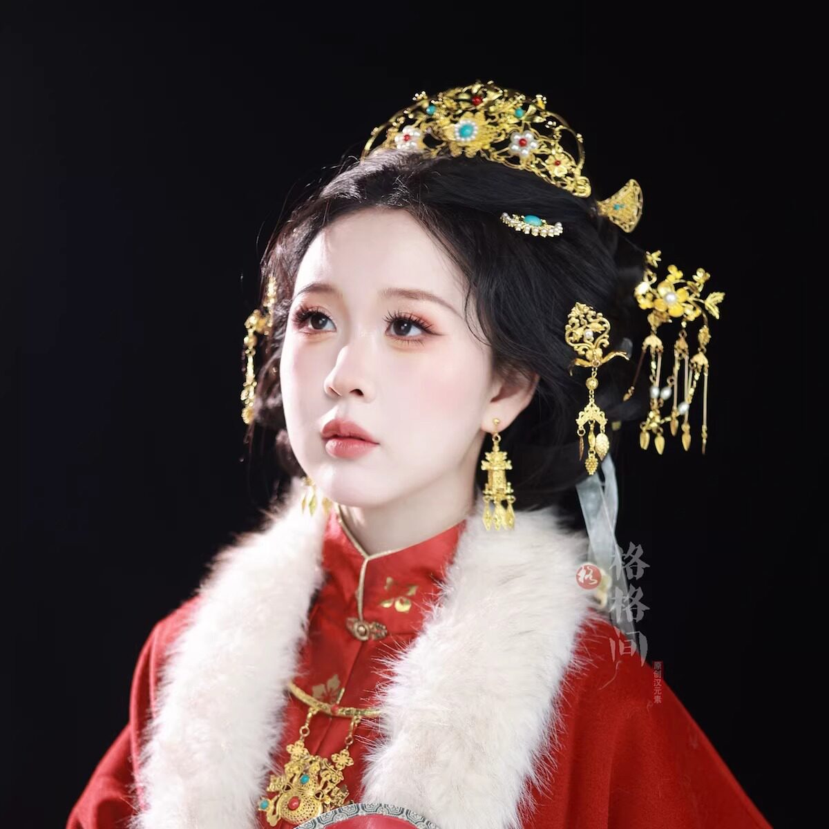 📚 格格间原创【明昭】金色华丽明制汉服凤冠霞帔新娘发冠套装秋冬