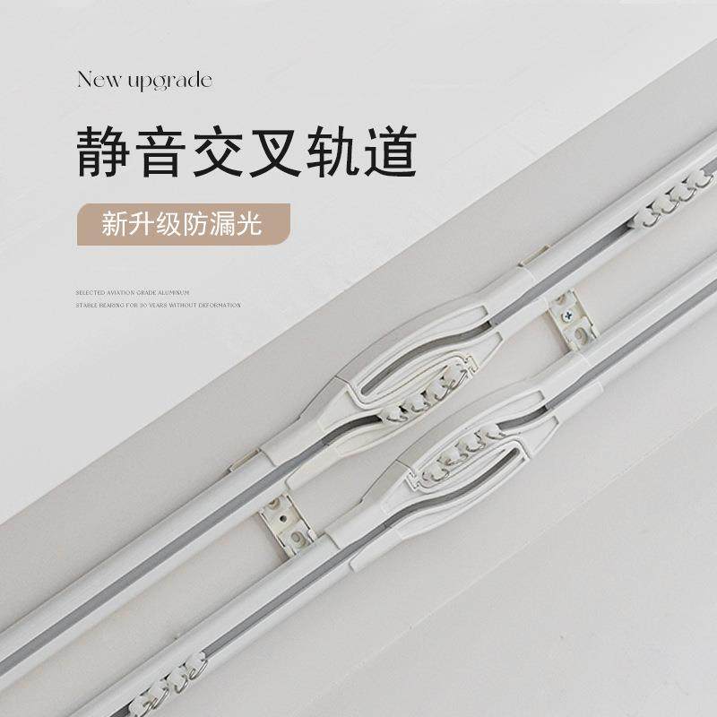 📚 交叉轨道轨铝合金窗帘轨防漏光音直加厚顶装道侧装静单双滑交叉轨