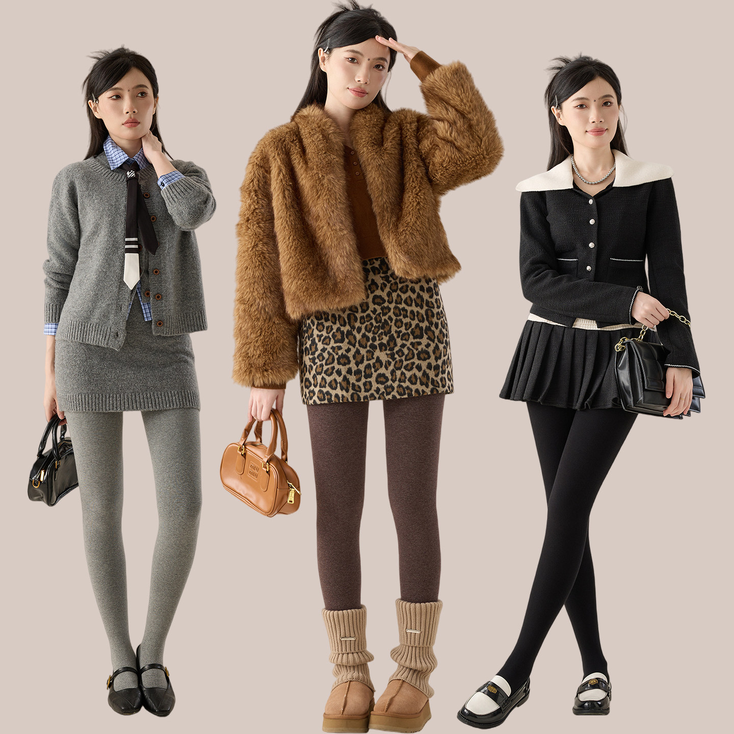 📚 小个子美拉德棕色打底裤女外穿秋冬季加绒保暖棉裤平纹配裙子裤袜