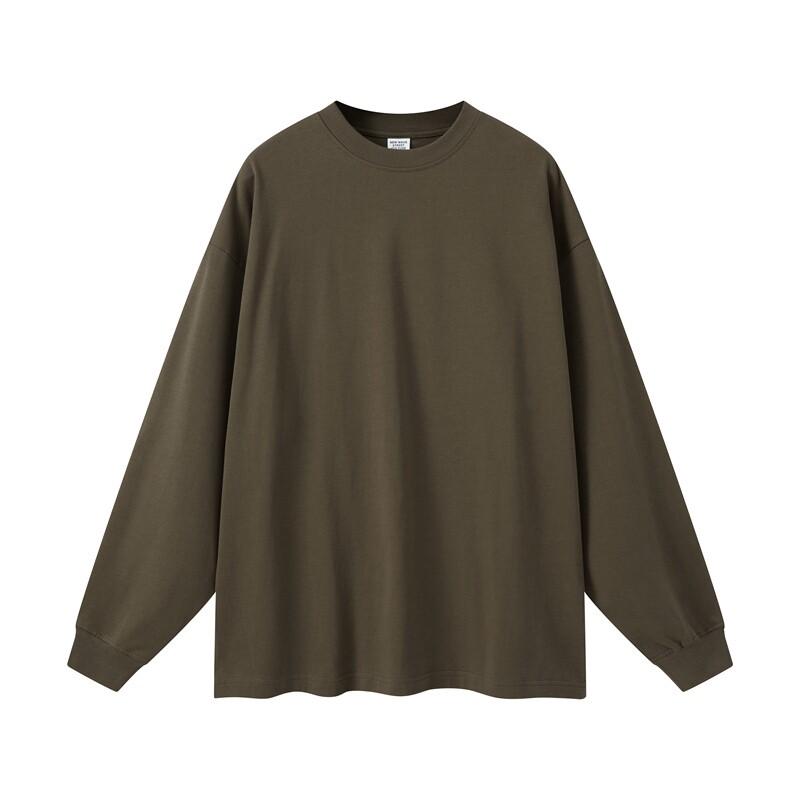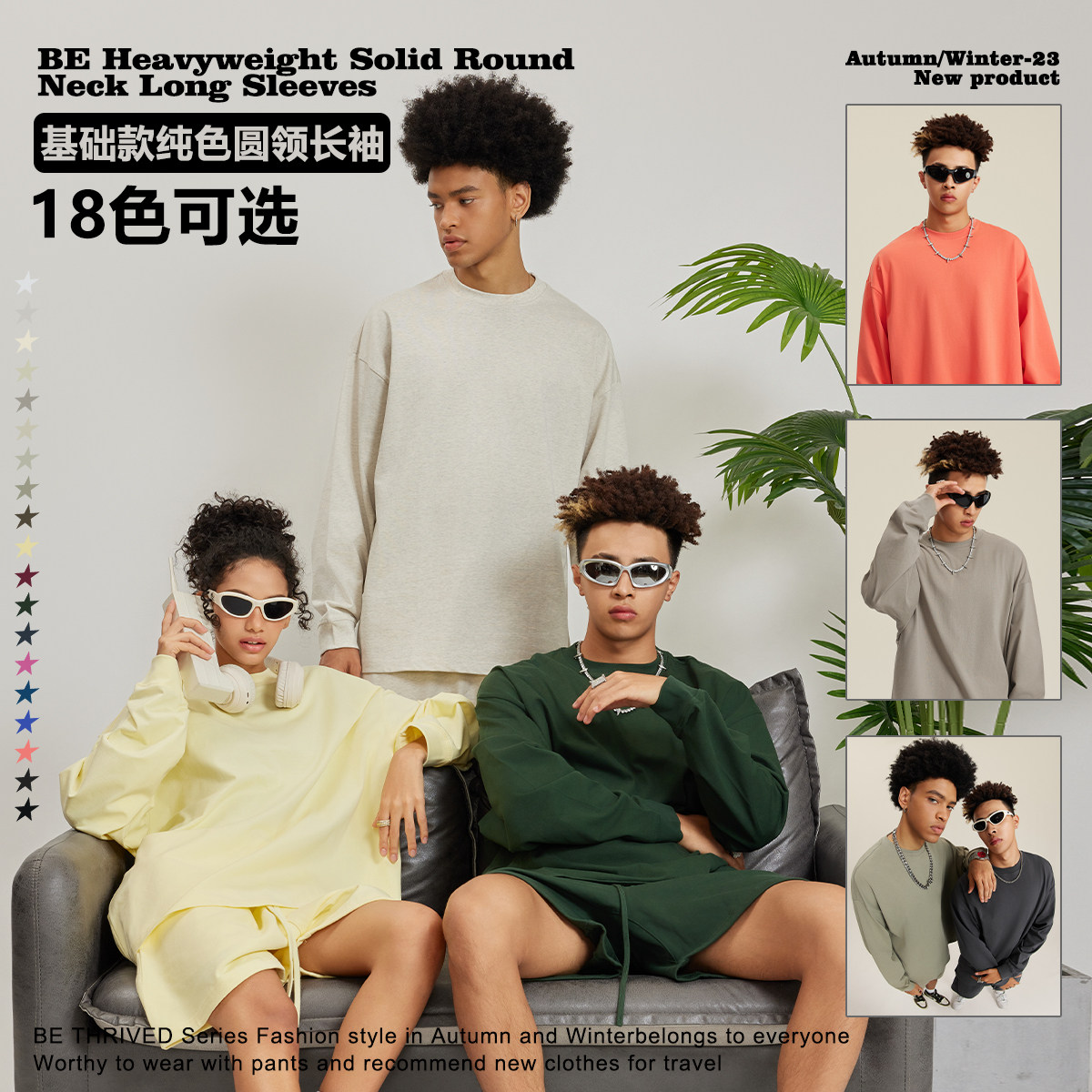 📚 百搭品质款305G重磅双纱平纹大地色基础打底T恤情侣纯棉长袖上衣
