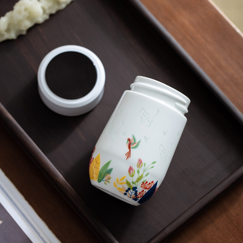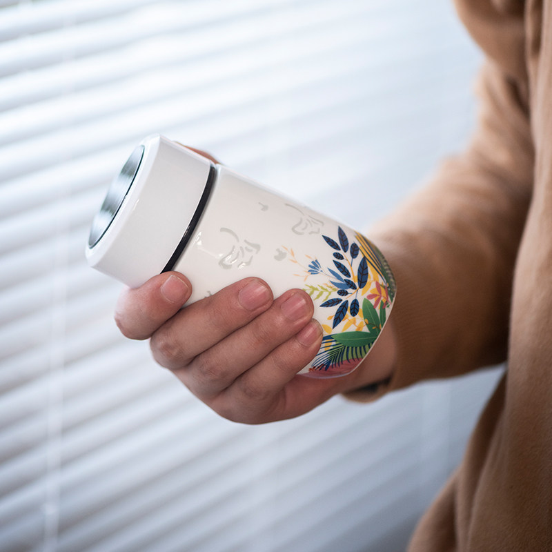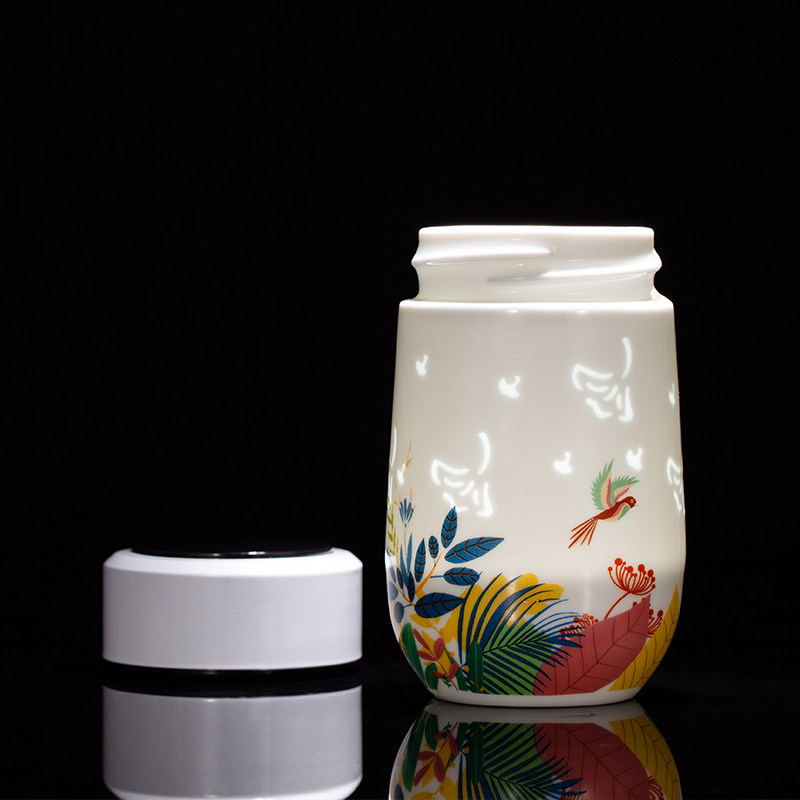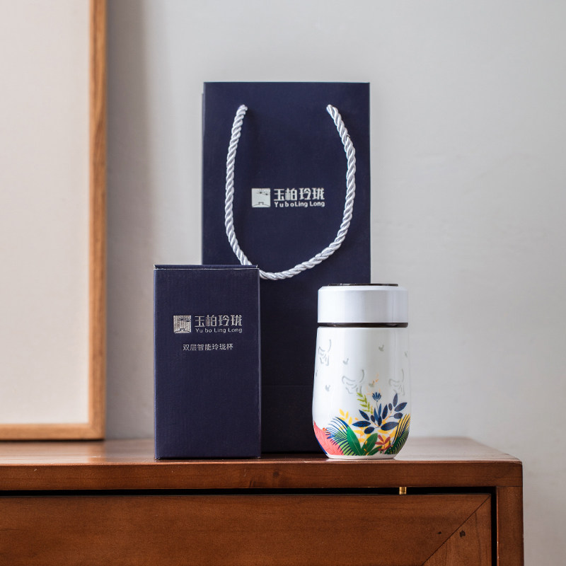 📚 玉柏玲珑瓷景德镇陶瓷弹盖水杯高档高级便携泡茶时尚男女士茶杯