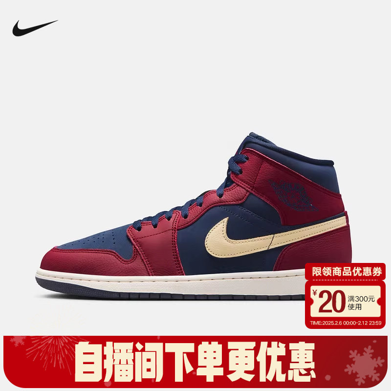 📚 耐克男鞋Air Jordan 1 AJ1中帮蓝红百搭运动复古篮球鞋IO7449-600