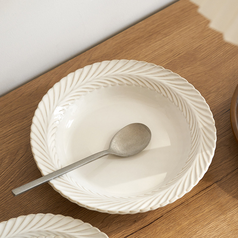 📚 肆月白色法式复古意面盘餐盘家用陶瓷盘子轻奢高级感西餐盘拍照盘