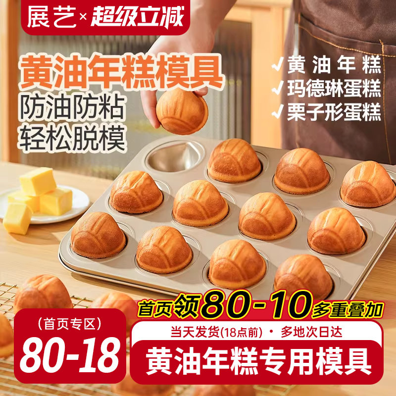 📚 展艺黄油年糕不粘栗子玛德琳模具12连烤板栗磨具蛋糕烘焙烤盘烤箱