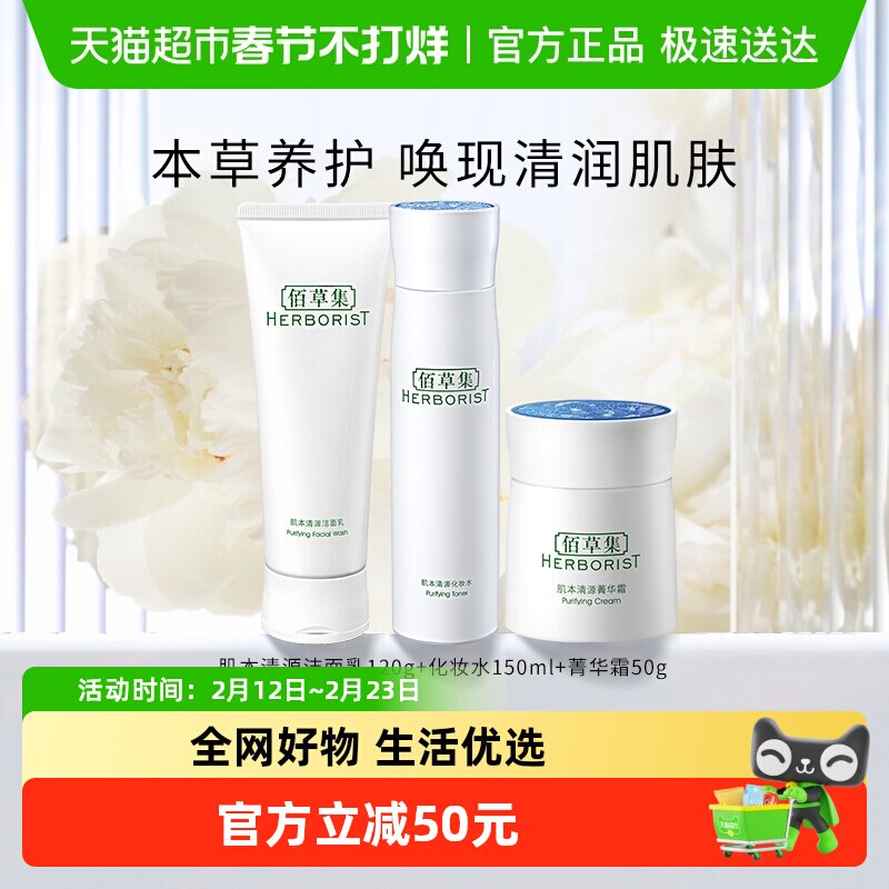📚 佰草集肌本清源洁水霜(120g+150ml+50g)*1组洗面奶湿敷水保湿面霜