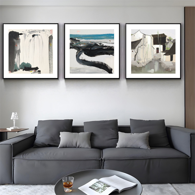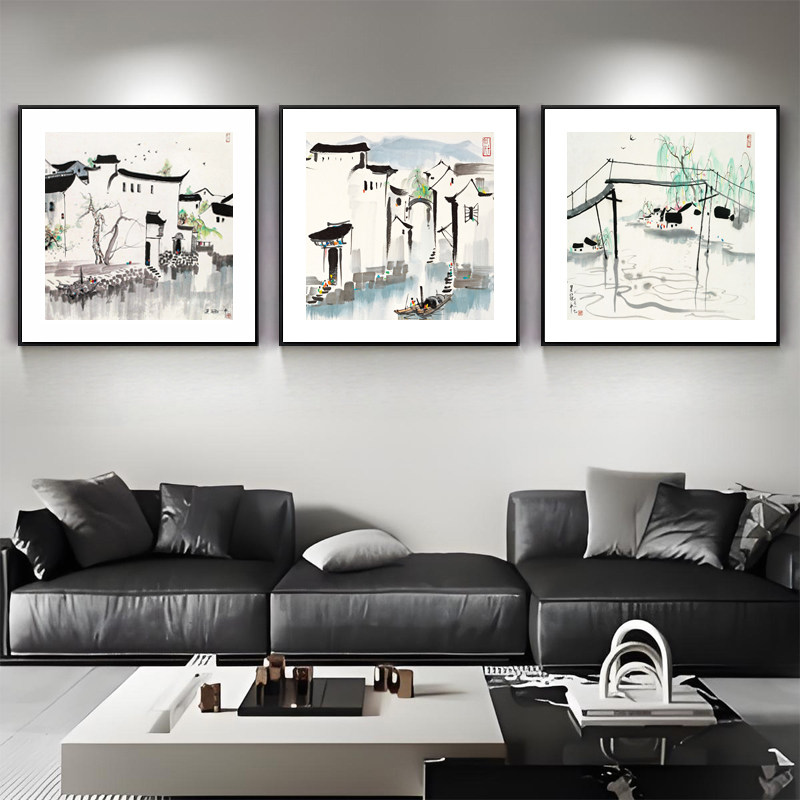 📚 吴冠中新中式客厅装饰画沙发背景墙挂画中国风写意江南水乡水墨画