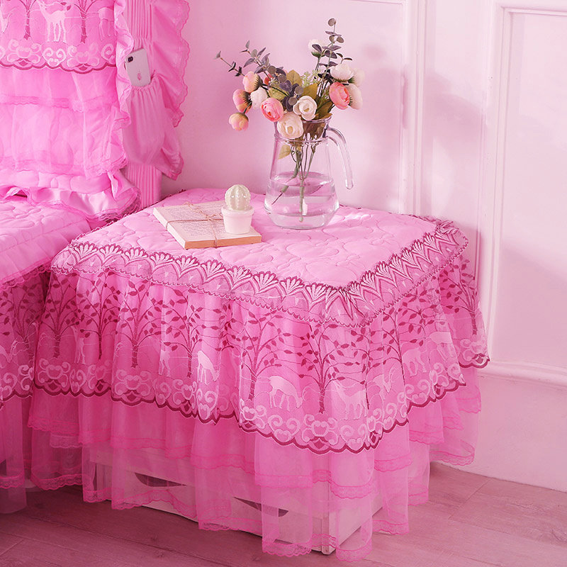 📚 蕾丝公主床头柜罩花边盖布盖巾夹棉加厚卧室桌布床头柜套防尘罩布