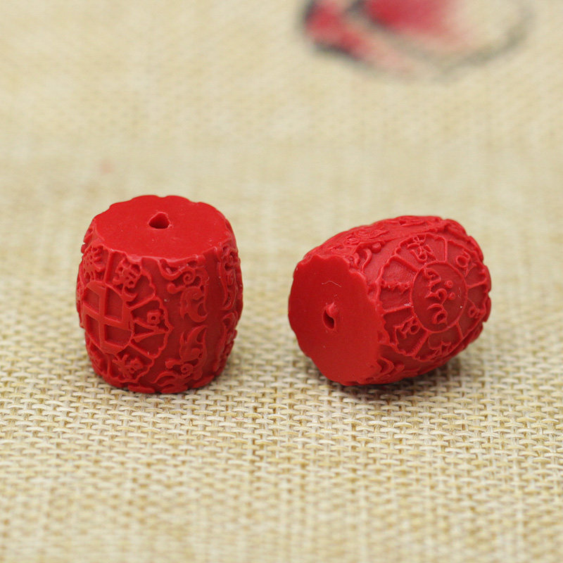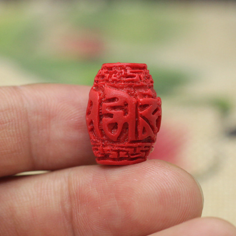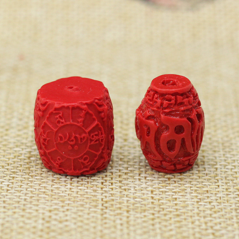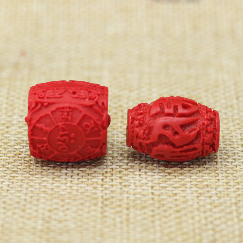 📚 天然朱砂原矿粉压散珠六字真言桶珠大明咒观世音佛珠手串红鼓珠子