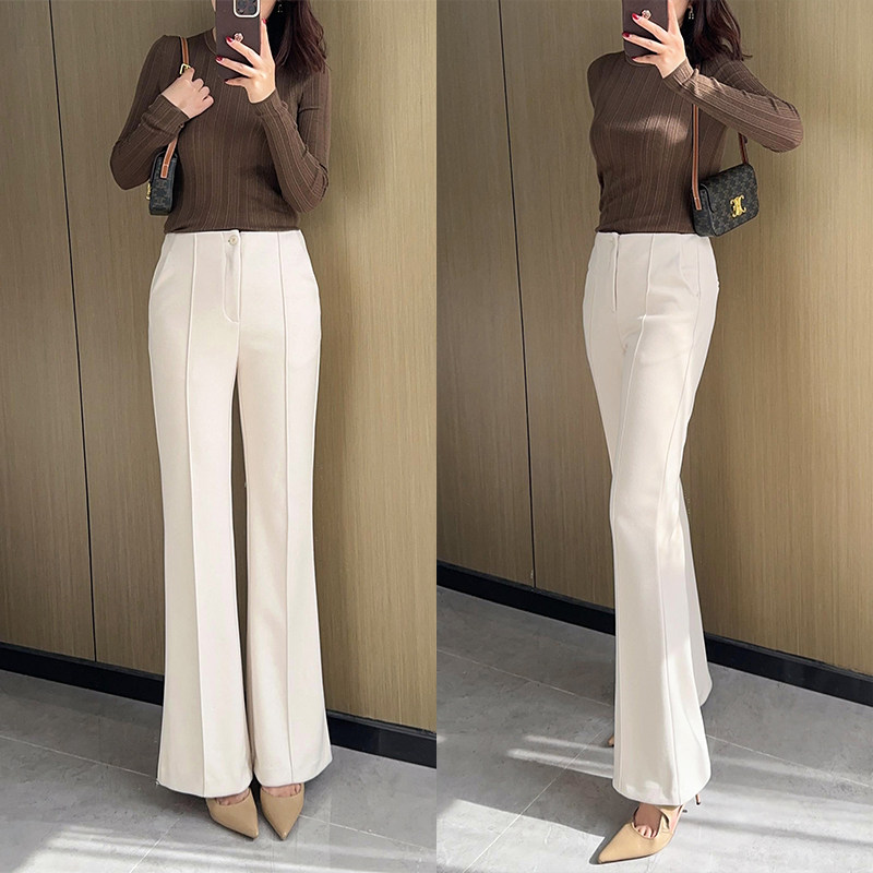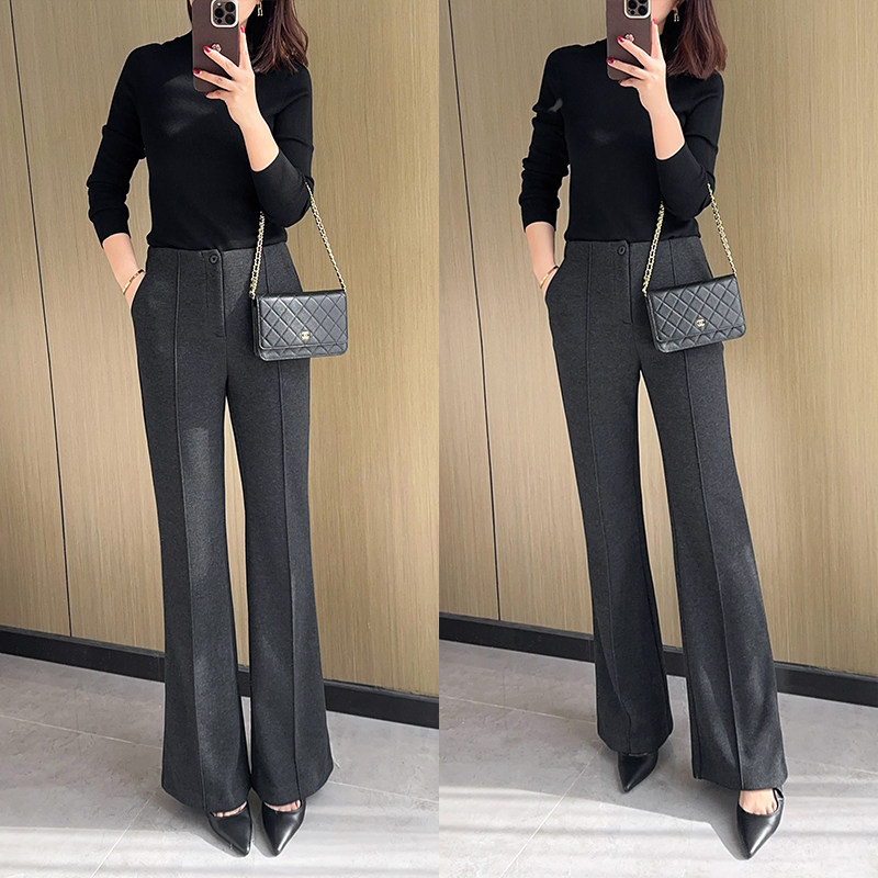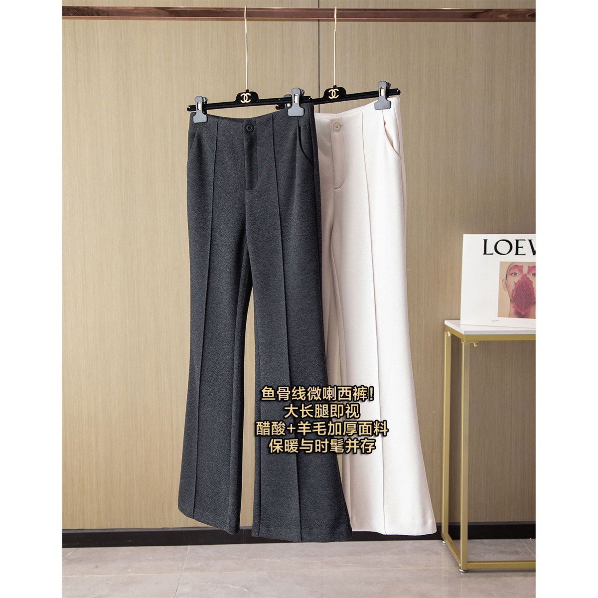 📚 摩登大长腿!秋冬厚款 醋酸+羊毛中缝鱼骨线通勤微喇西裤毛呢长裤