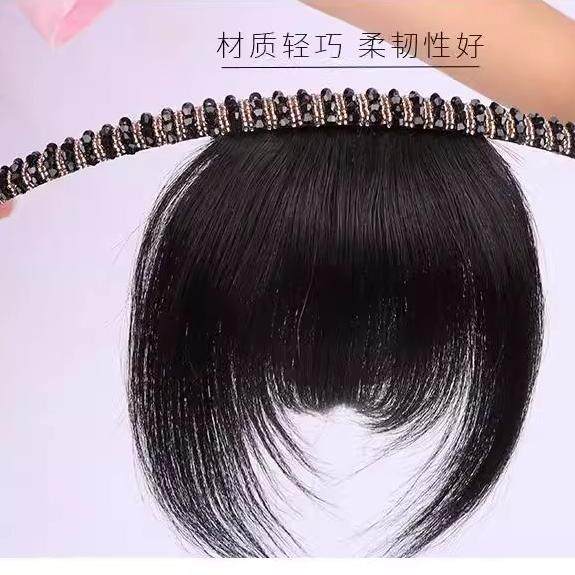 💥美发新风尚!发箍刘海假发一体女全真发水钻发箍遮前额修鬓角刘海头帘,券后价39秒变女神👸
