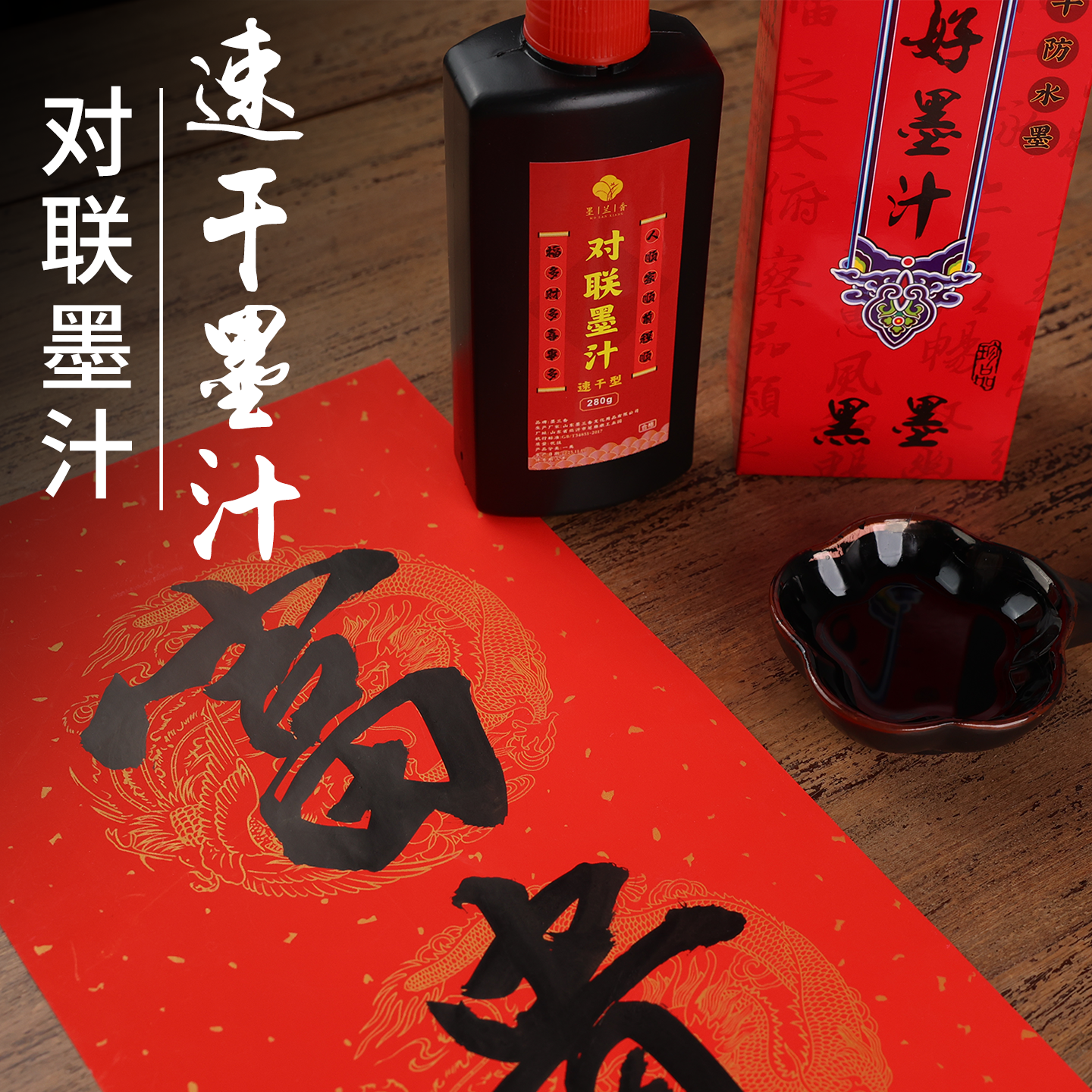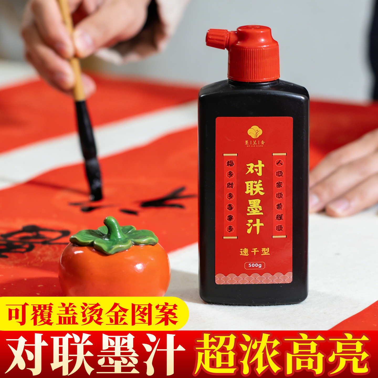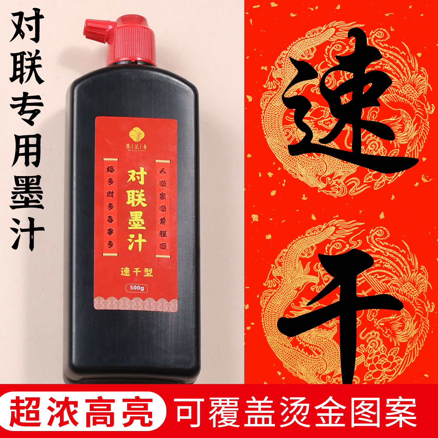 📚 速干型铜版纸对联专用墨汁对联专用大瓶浓黑铜版纸对联专用墨汁墨水书法专用毛笔书法专用金色墨汁铜版纸墨汁