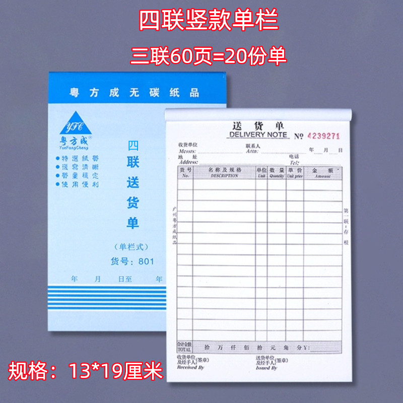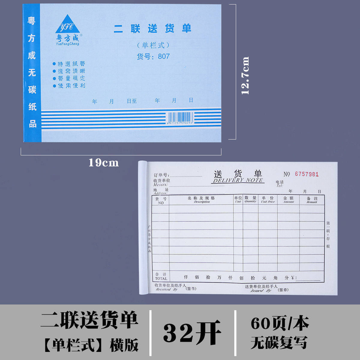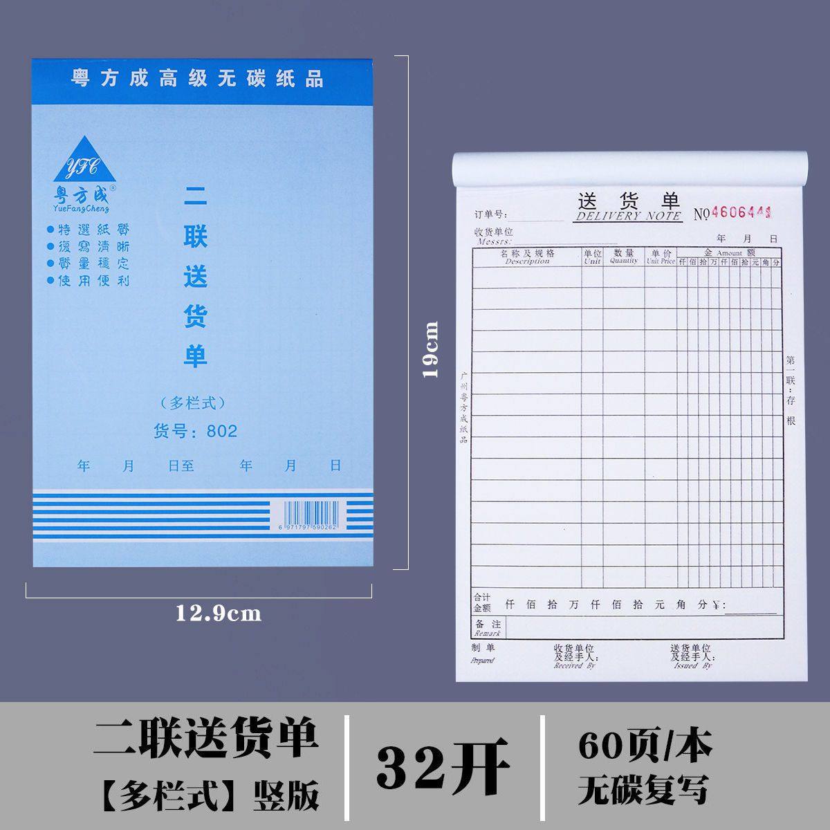 📚 20本粤方成送货单二联两联送货单三联四联大本竖直款32开送货单横款无碳复写收款单据带垫板复写清晰支持定制