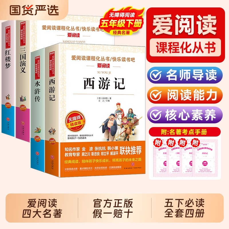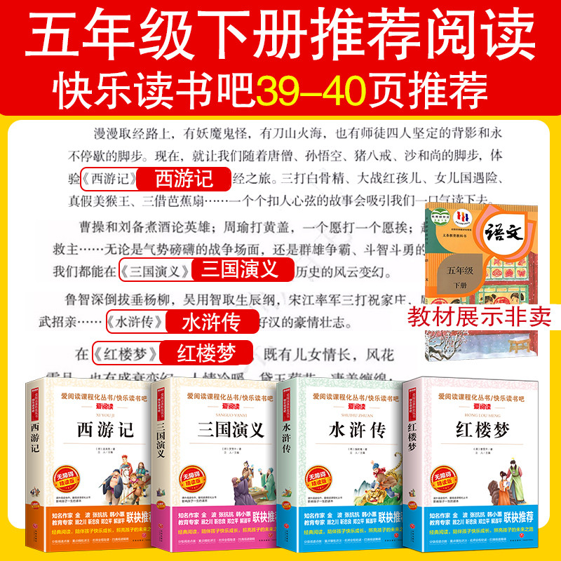📚 四大名著原著正版小学生版五年级下册快乐读书吧必读课外书水浒传西游记红楼梦三国演义版中国青少年版本五下全套阅读动物导读经典