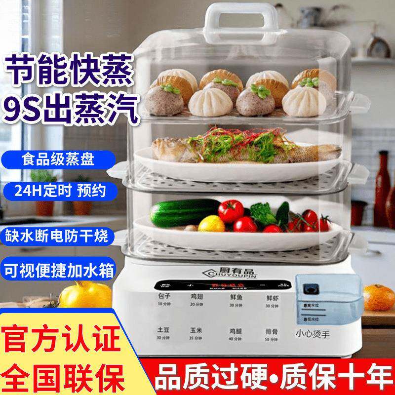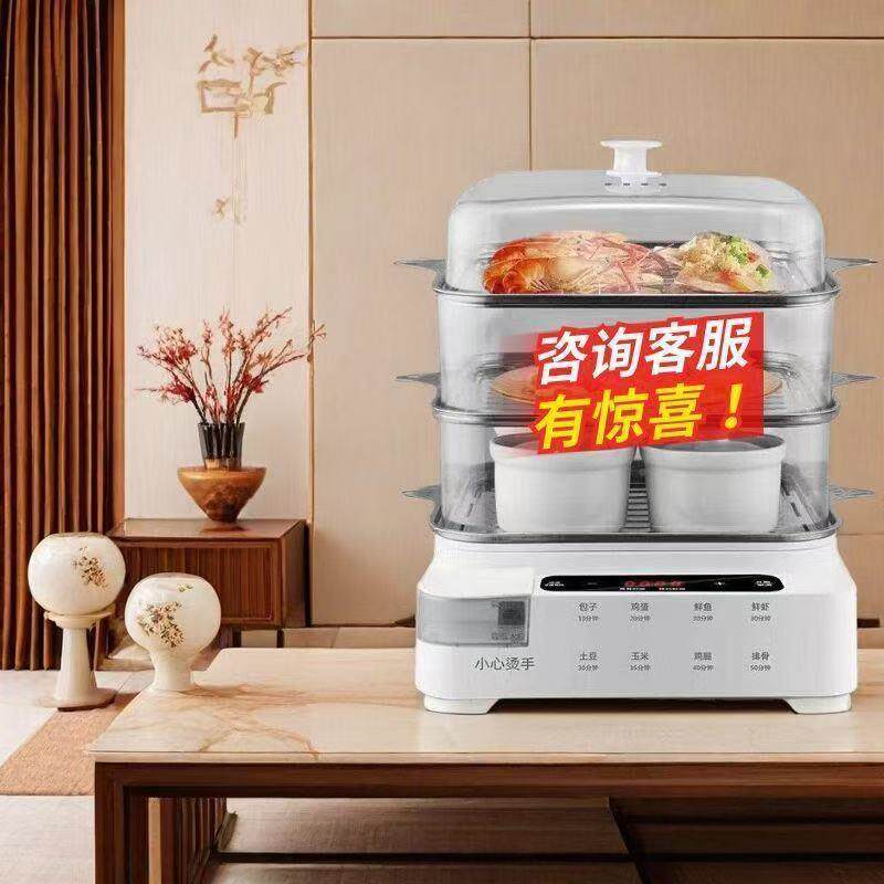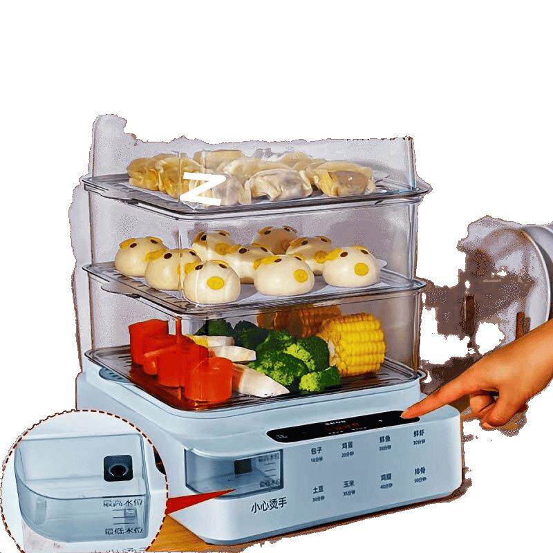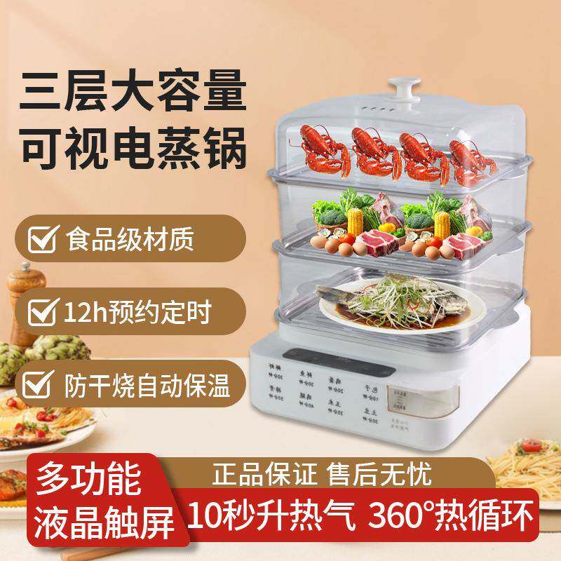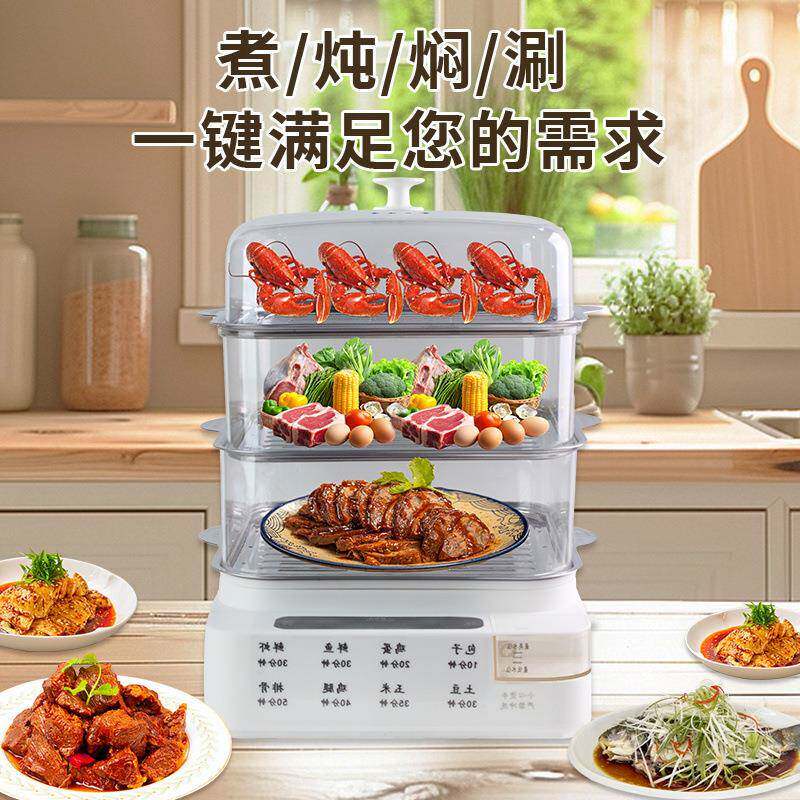 📚 1多功能电大容量不锈钢蒸盘三层蒸蒸鱼锅可视加水蒸定时蒸笼锅锅