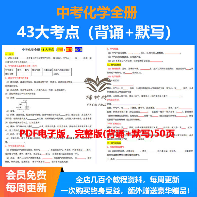 📚 初中小纸条电子版合集中考化学全册夯基43大考点(背诵+默写)50页语文古诗文默写早背晚默每日一练打卡练习可打印