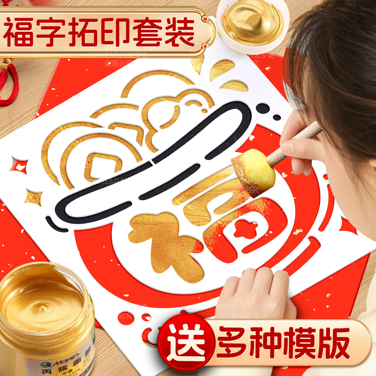 📚 福字拓印材料包2026马年工具套装diy手工新年幼儿园非遗镂空儿童学生大号涂鸦模版模具宣纸春节年画元旦新年