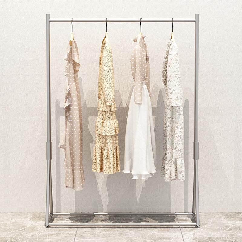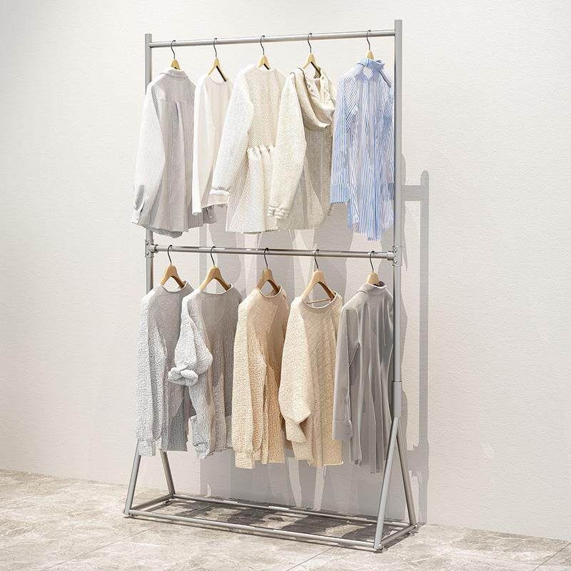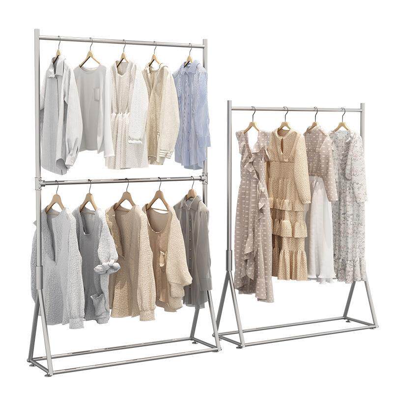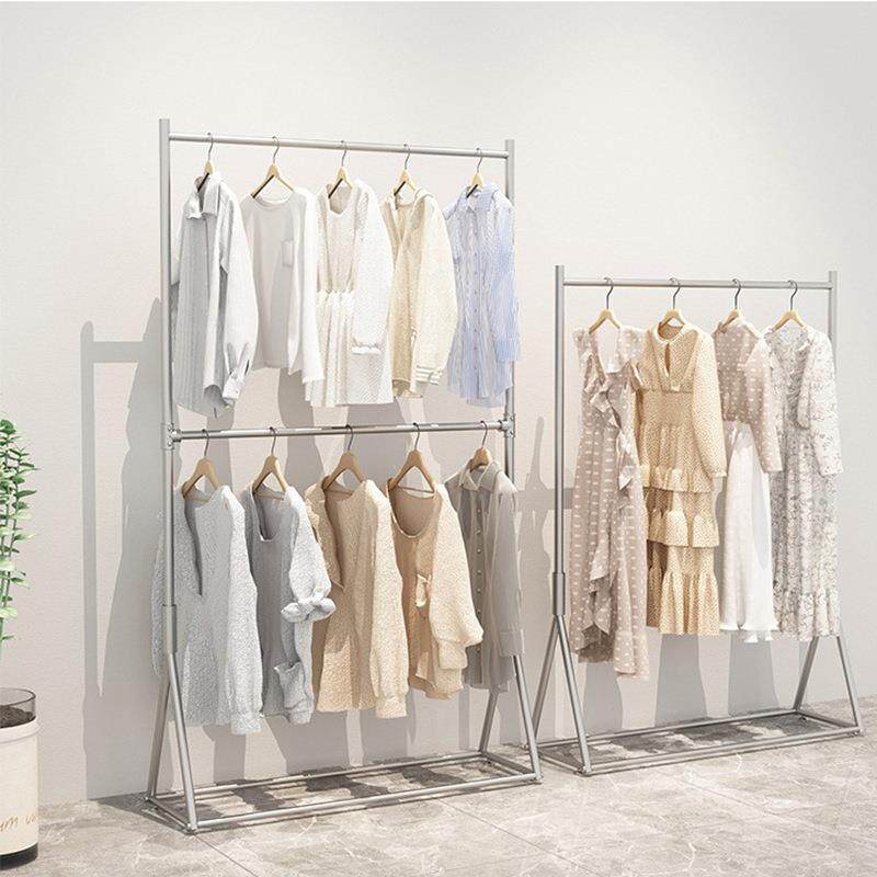 📚 双层服装店展示架男女装升降挂衣架不锈钢拉丝银色可调节服装货架