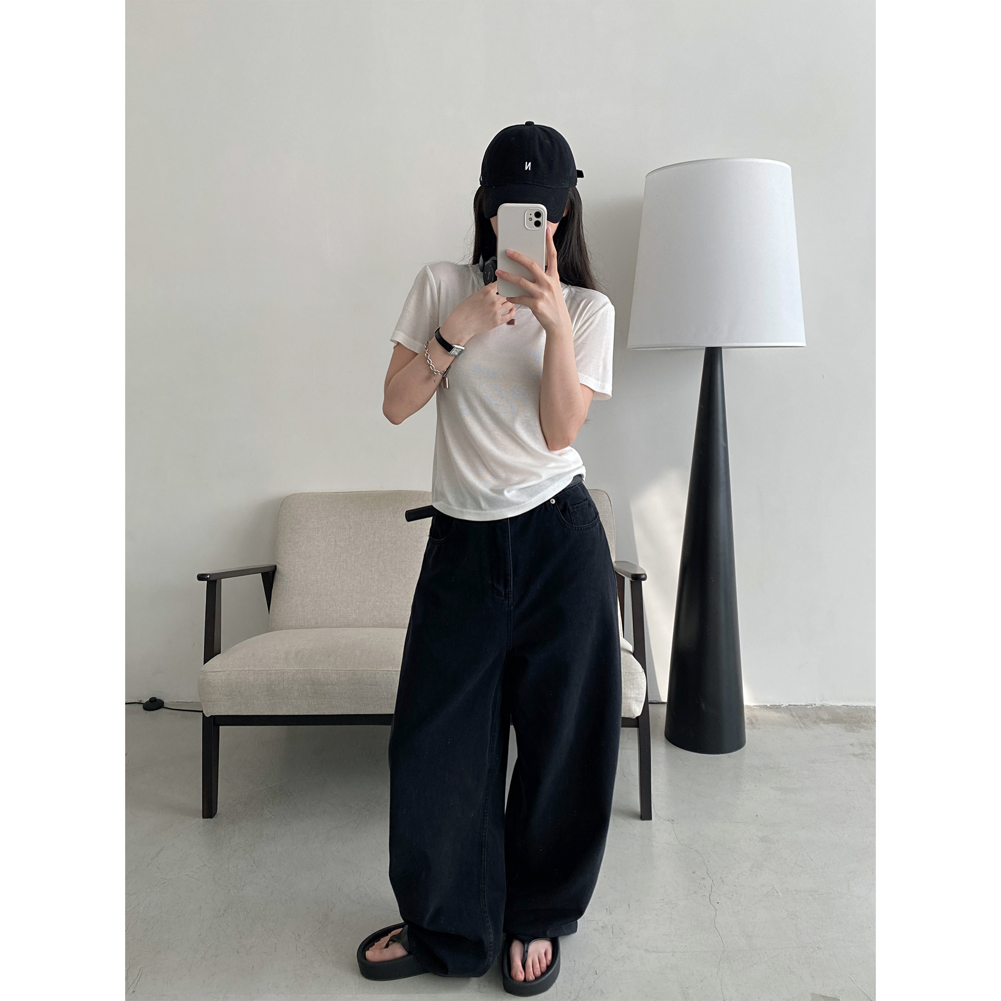 📚 sun柚 店主私服水洗黑柔软显瘦松弛弯刀牛仔裤长裤女春秋黑色阔腿