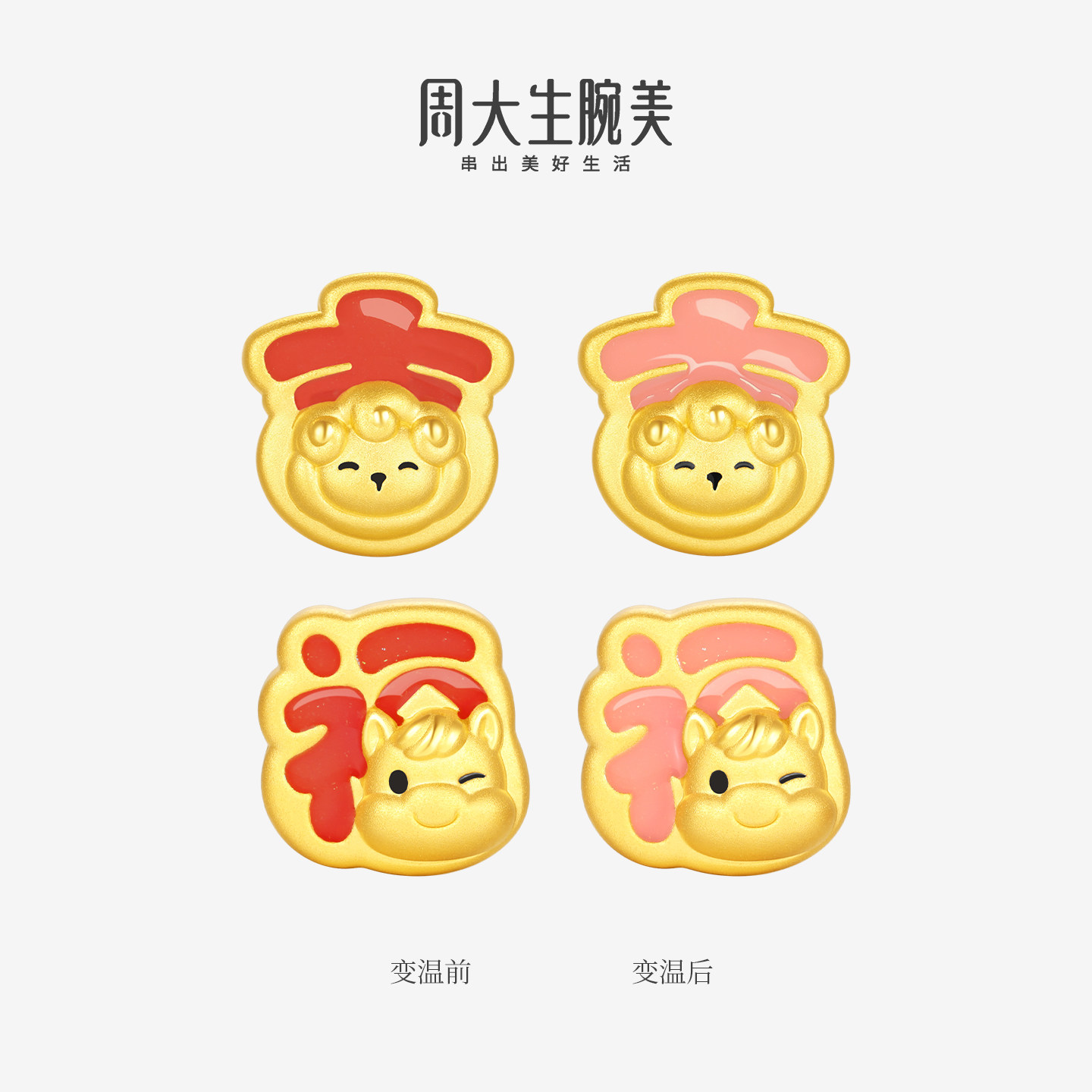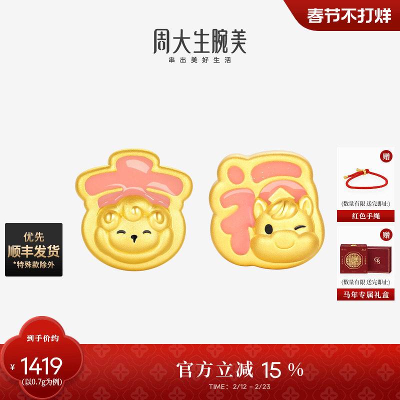 📚 周大生黄金腕美转运珠足金硬金温感珐琅福运小马手链本命年生肖马