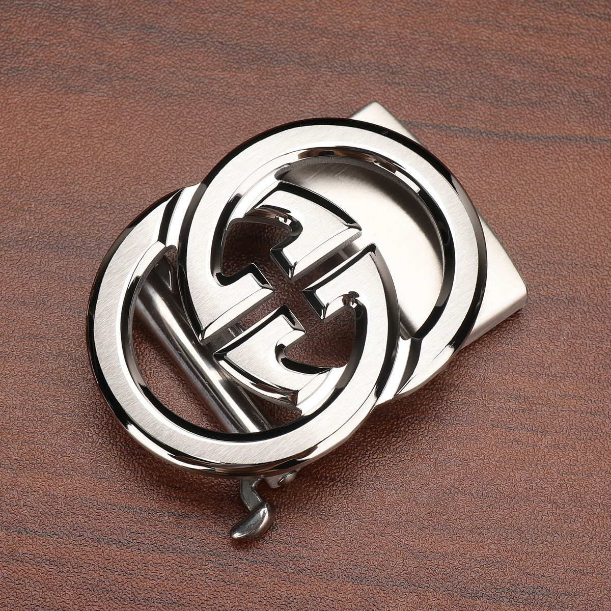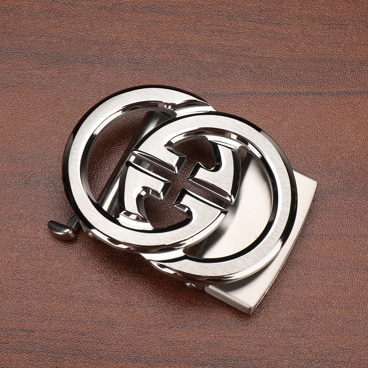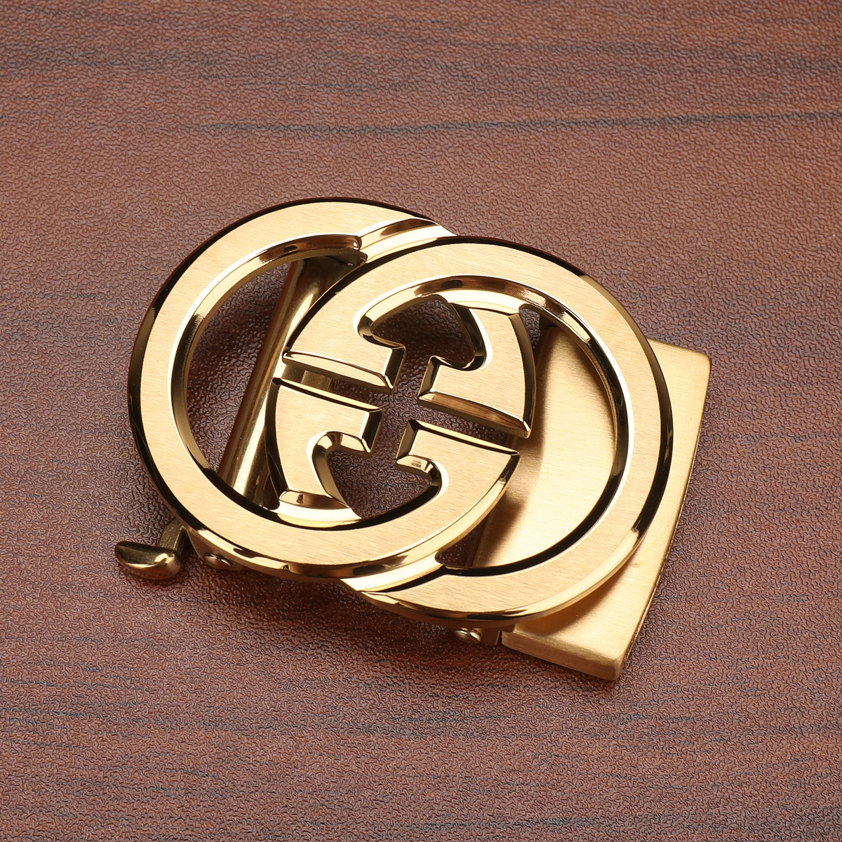 📚 拉丝双G字母纯钢扣不锈钢自动扣头皮带头男士腰带裤带头配3.5 3.8