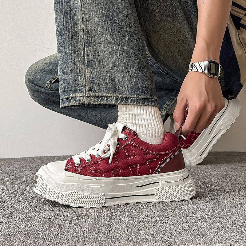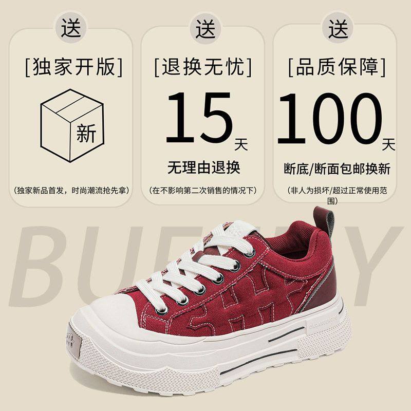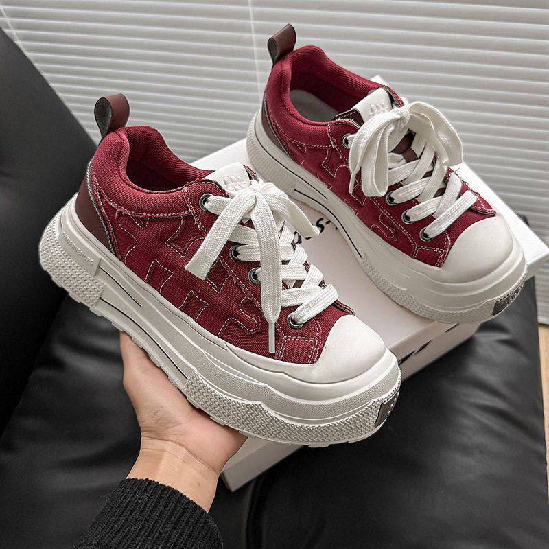 📚 2025秋冬明星同款重奏梅花系列厚底增高复古帆布鞋男女做旧情侣鞋