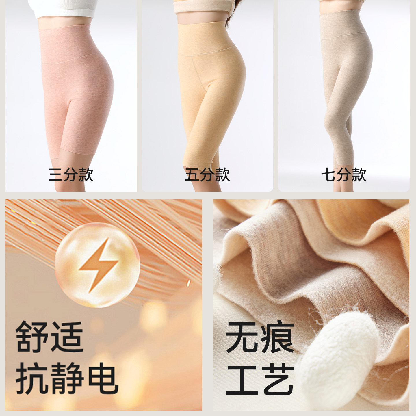 📚 羊毛蚕丝保暖裤七分收腹短裤女士内穿秋冬吸湿发热加绒无痕打底裤