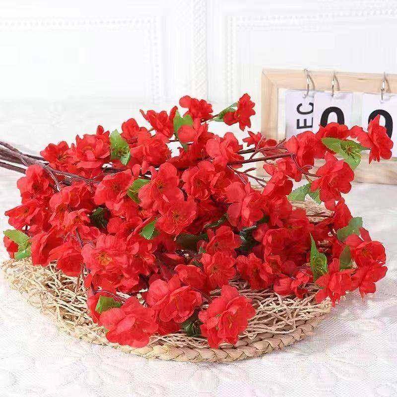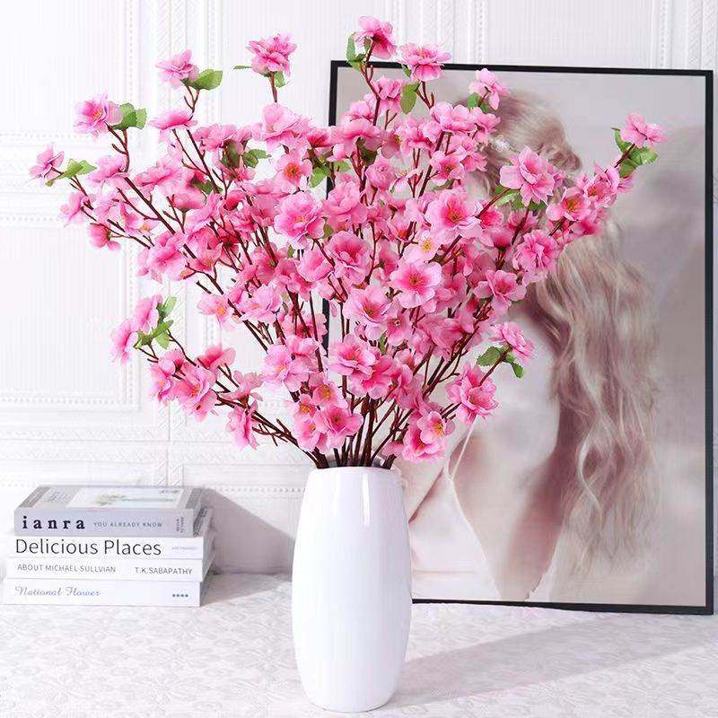 📚 仿真桃花枝客厅假花桃花枝摆件餐桌装饰花摆设干花高档桌面摆花