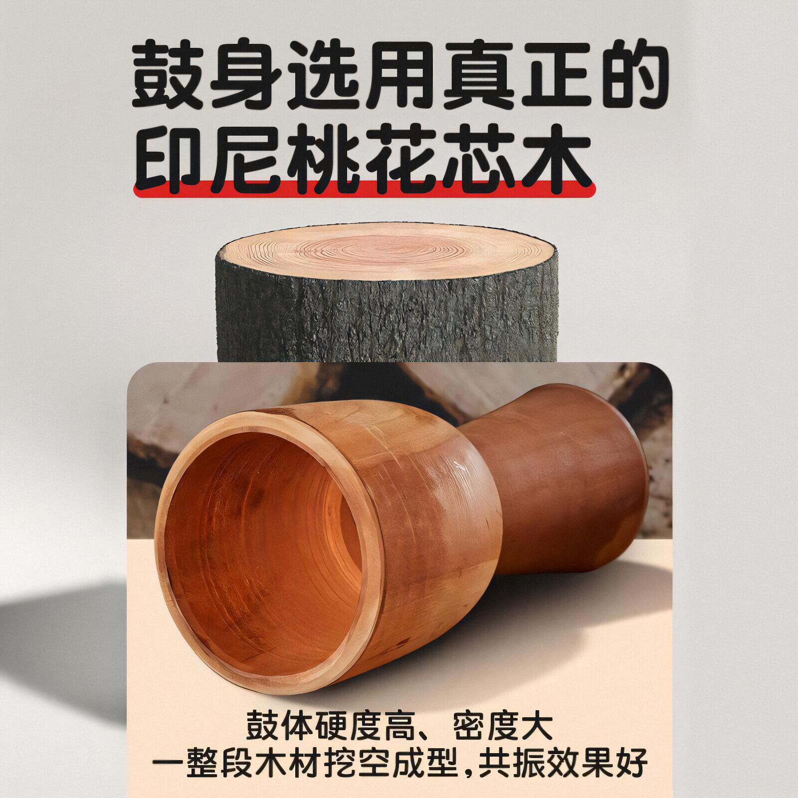 📚 POXINO非洲鼓木质羊皮鼓打击乐器成人儿童初学丽江手鼓8/10/12寸