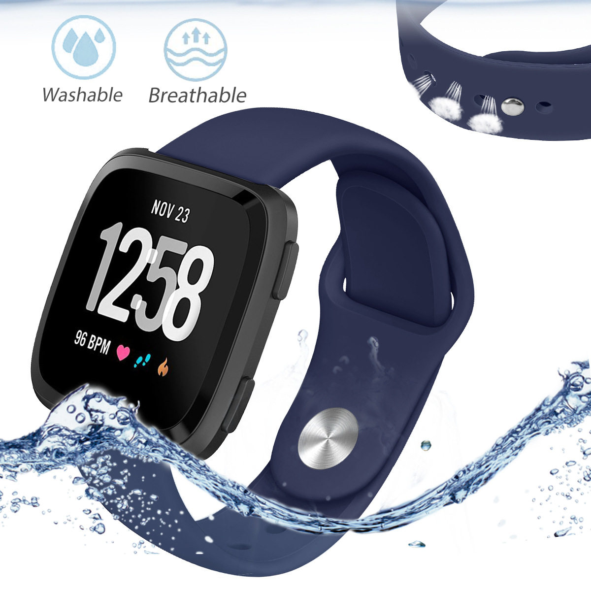📚 适用Fitbit versa/Lite 2/4代 versa3/sense手表黑色反扣硅胶表带