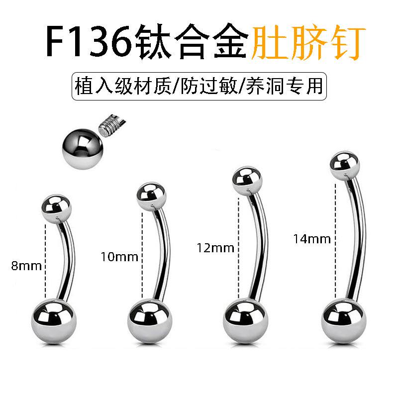 📚 F136钛合金 植入级肚脐环 外螺纹弯杆 基础圆球脐钉 养洞穿刺饰品