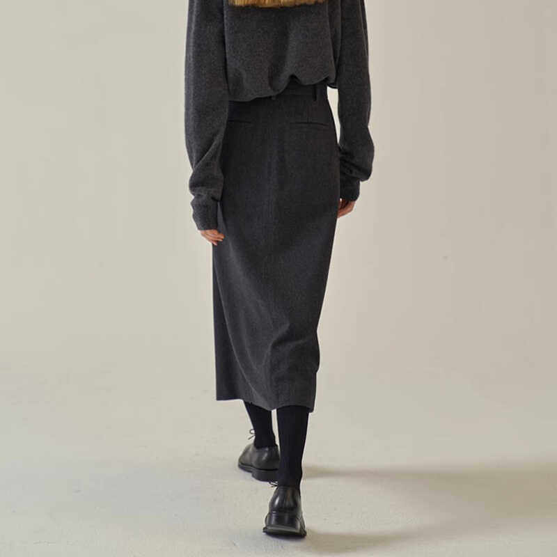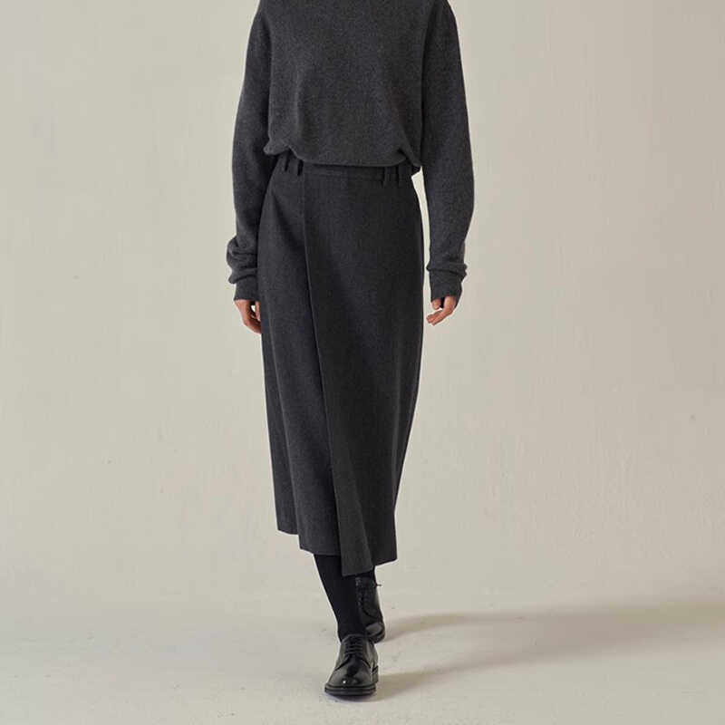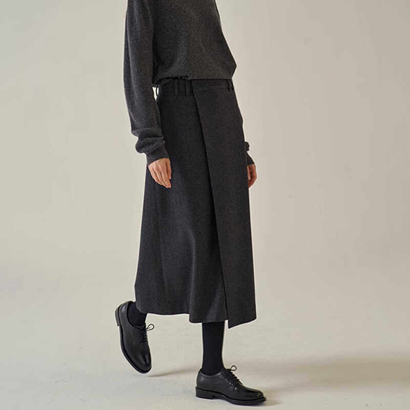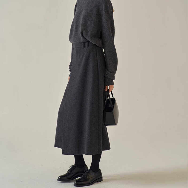 📚 FACADE PATTERN极简半身裙女秋冬季高腰过膝羊毛A字裙显瘦半裙子