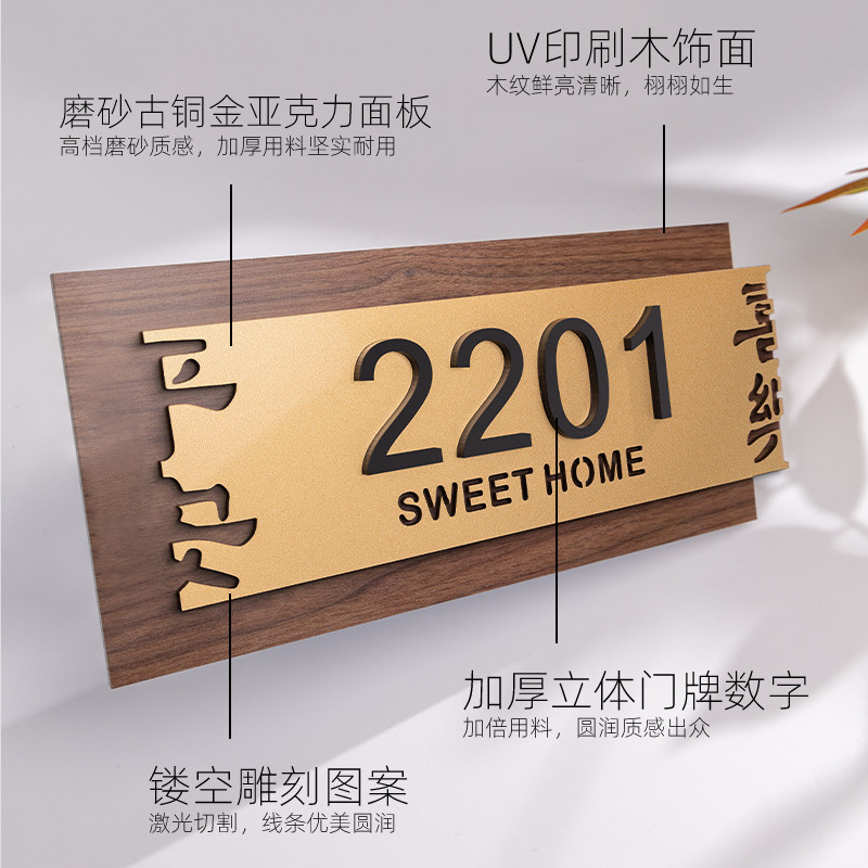 📚 门牌号码牌家用定制公司办公室轻奢立体房号标识牌子高档酒店小区单元楼公寓住宅入户门高级感房间号装饰订制