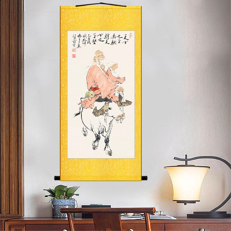 📚 老子出关图画像 紫气东来骑牛图 道家中式复古书房装饰画卷轴挂画