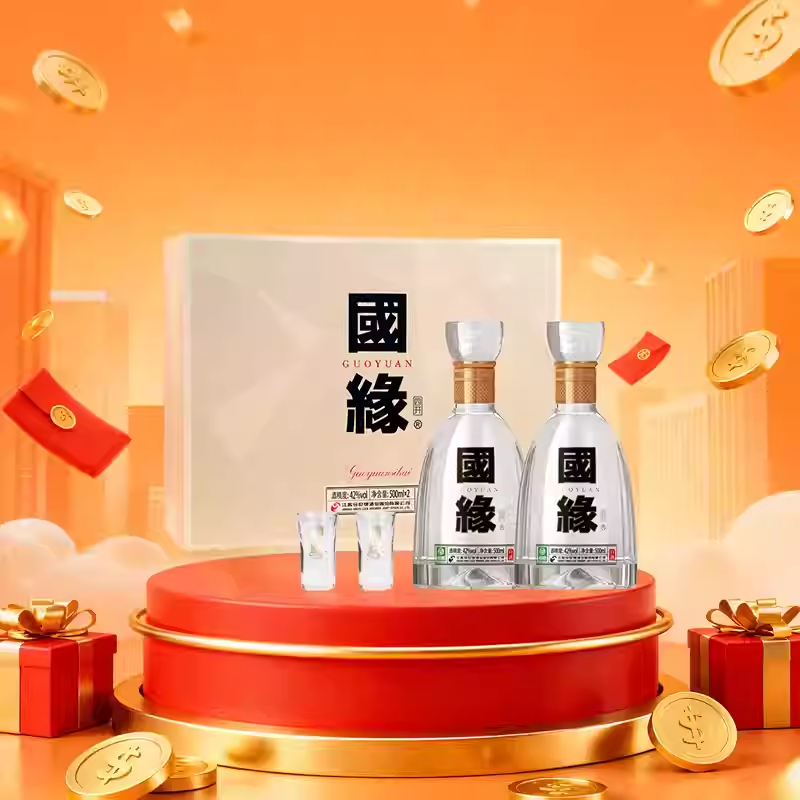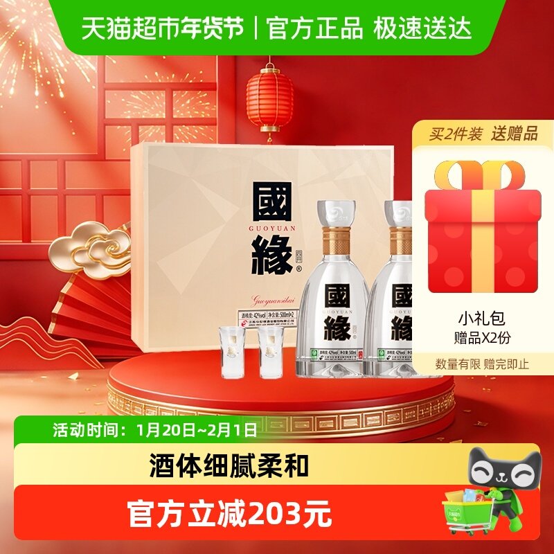 📚 今世缘国缘四开42度500ml*2瓶礼盒装浓香型白酒 商务宴请送礼酒水