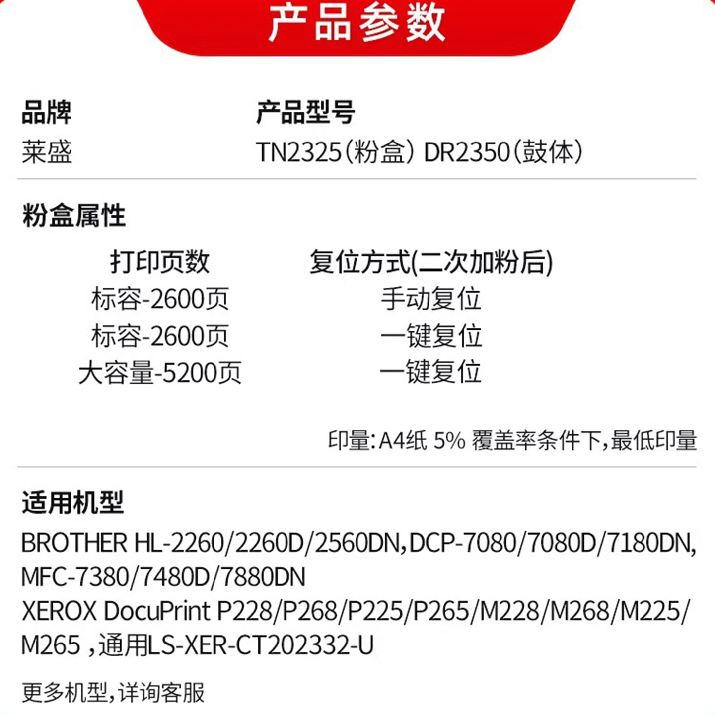 📚 莱盛适用兄弟TN2325粉盒HL2260 2260D 2560DN DCP7080 7180DN MFC7380 7480D 7880DN鼓粉分离式鼓体架DR2350