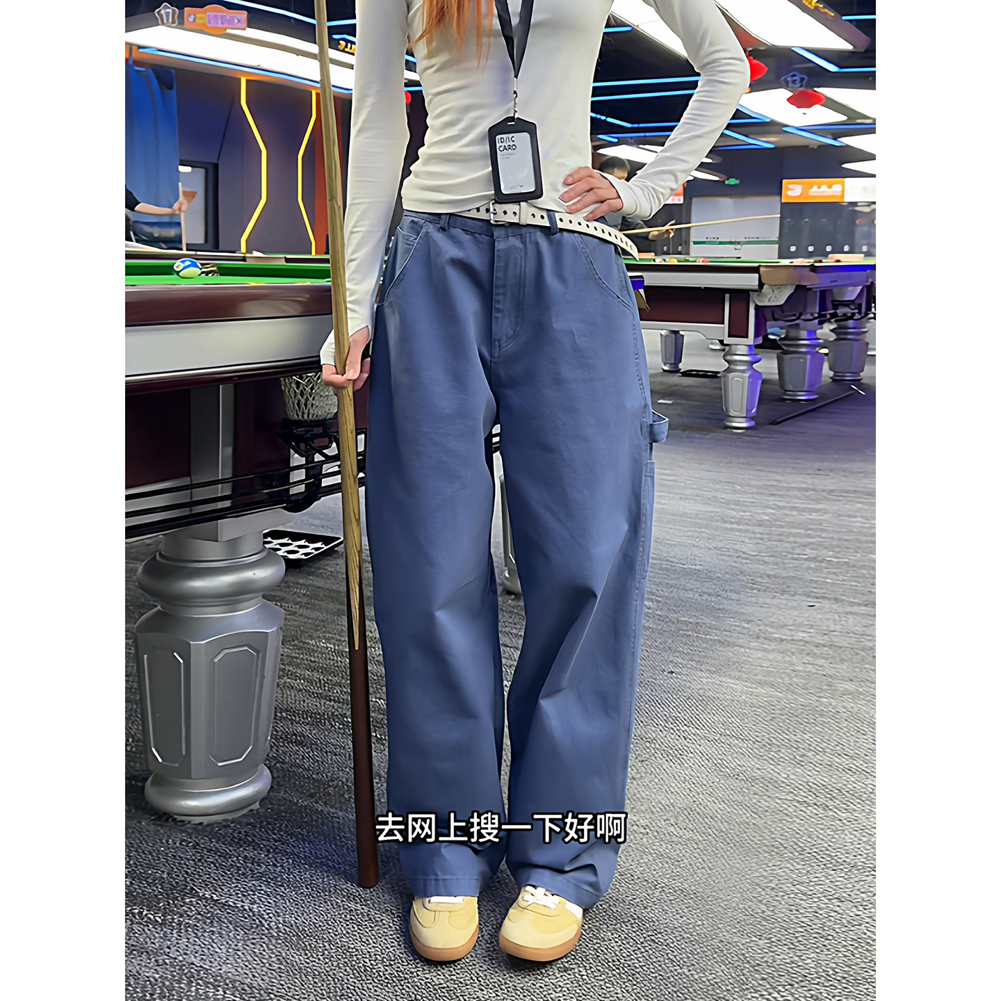 📚 法工蓝水洗做旧阔腿工装裤男款春秋季美式伐木裤子直筒宽松休闲裤