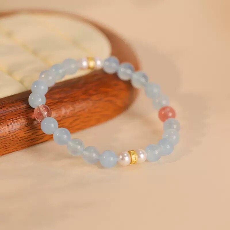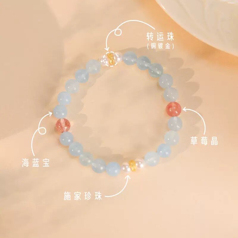 📚 原创清透感天然海宝蓝手串新中式水晶手串珍珠草莓手链小众设计