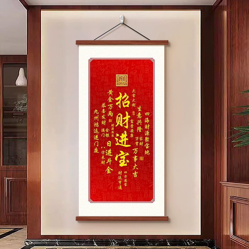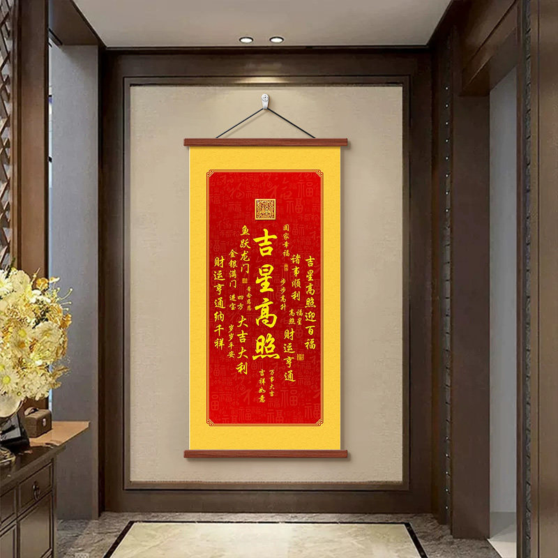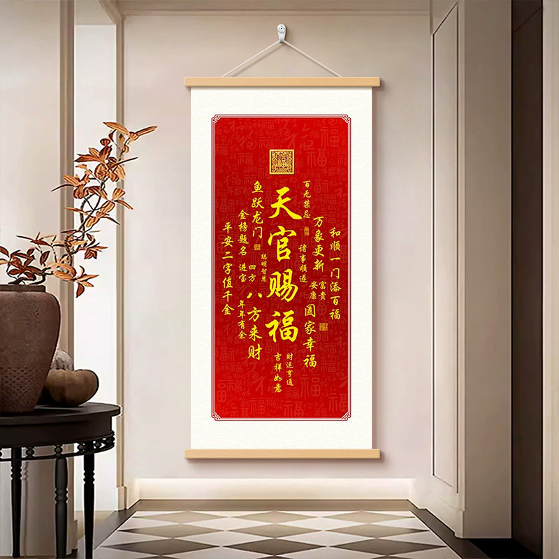 📚 天官赐福卷轴挂画新中式客厅玄关装饰画福寿康宁风调雨顺吉祥字画