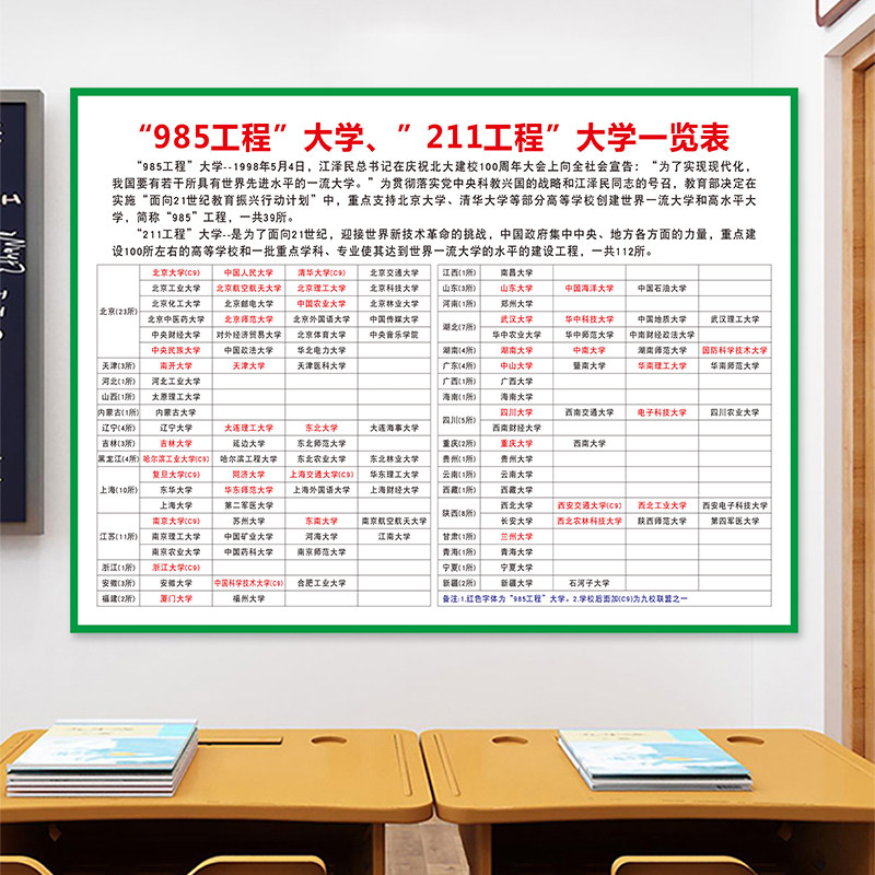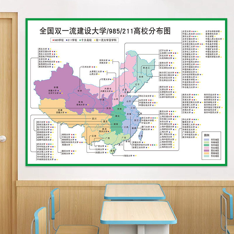 📚 全国本科院校城市分布图双一流建设大学985 211工程高校名单墙贴
