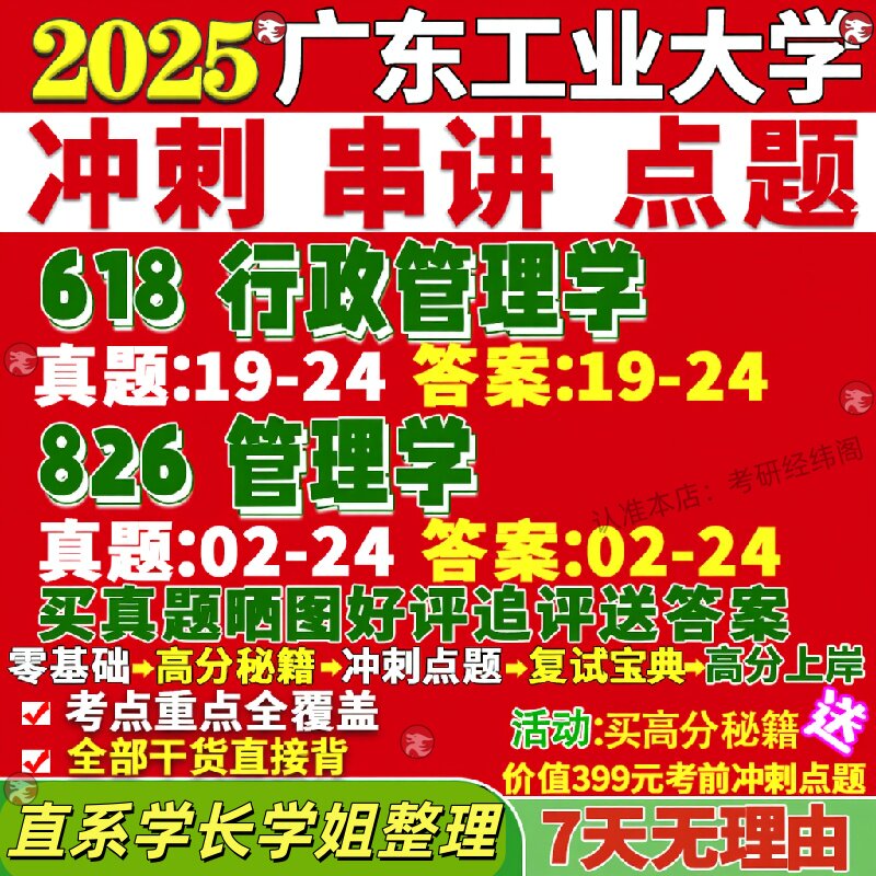 📚 新版广东工业大学研究生考试考研广工618行政管理学826管理学真题复试网课辅导教材考研资料答案
