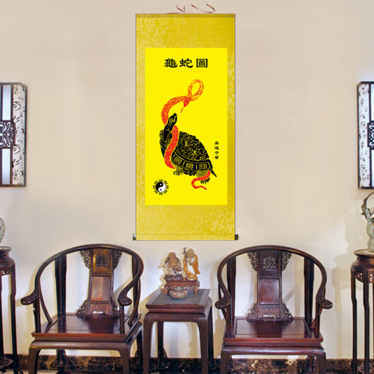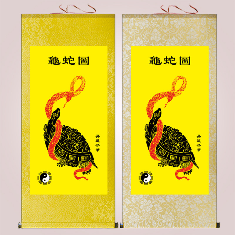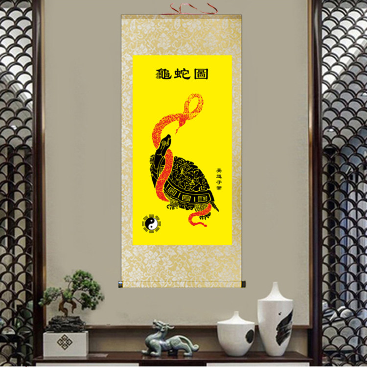 📚 吴道子龟蛇图挂画玄关客厅装饰画办公室卷轴画八卦图绢布挂画订制