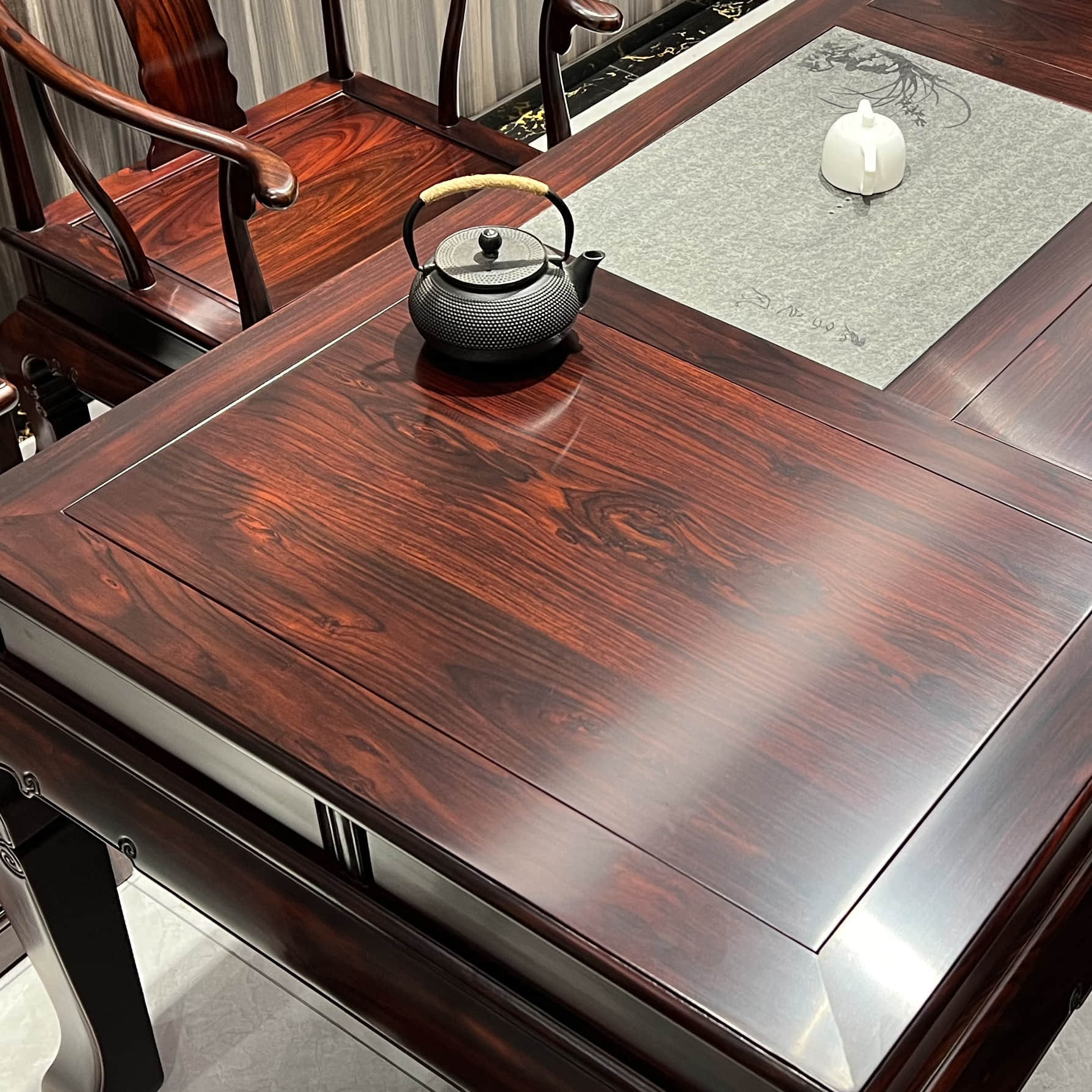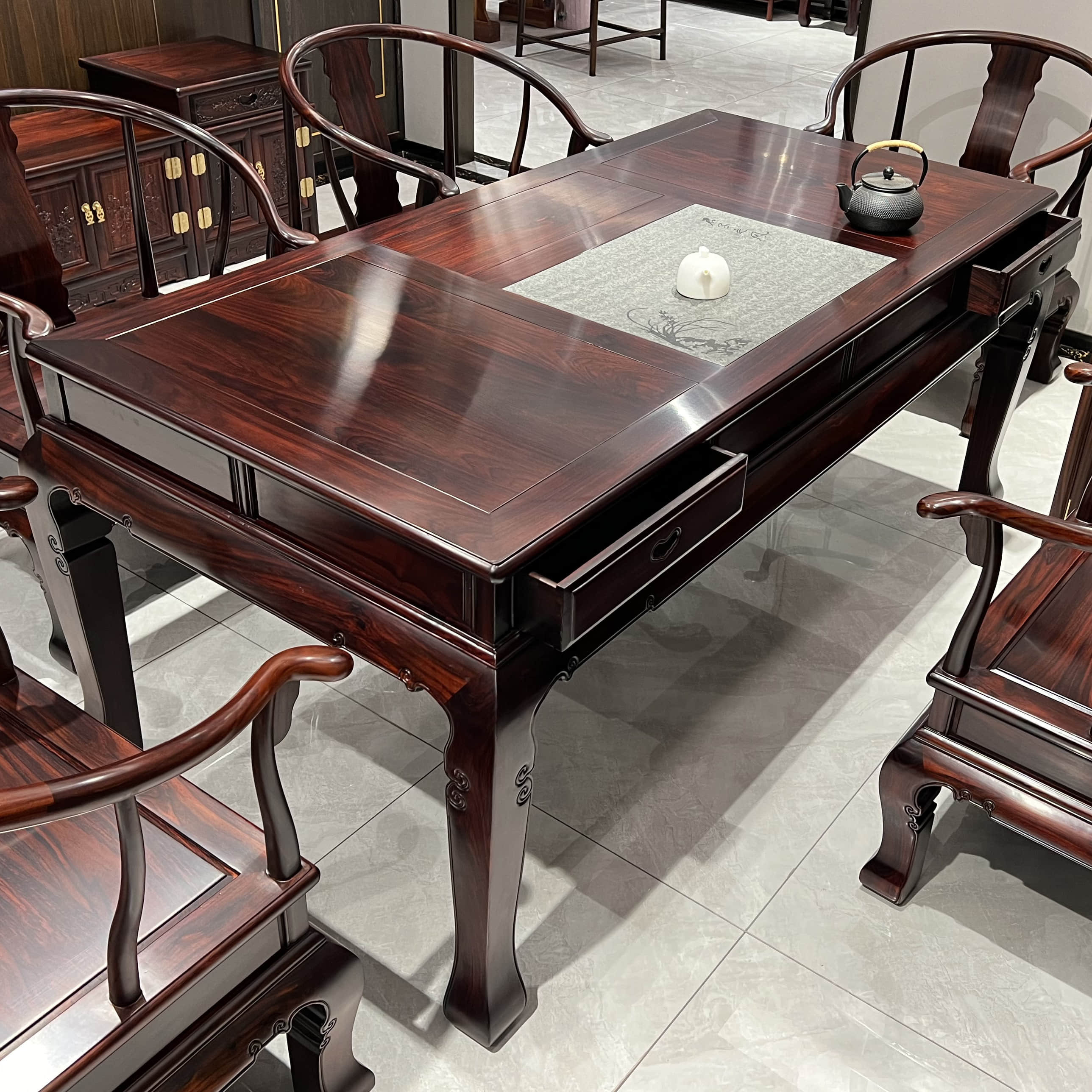 📚 素面简约印尼黑酸枝木茶台中式红木家具功夫茶道阔叶黄檀金狮茶桌