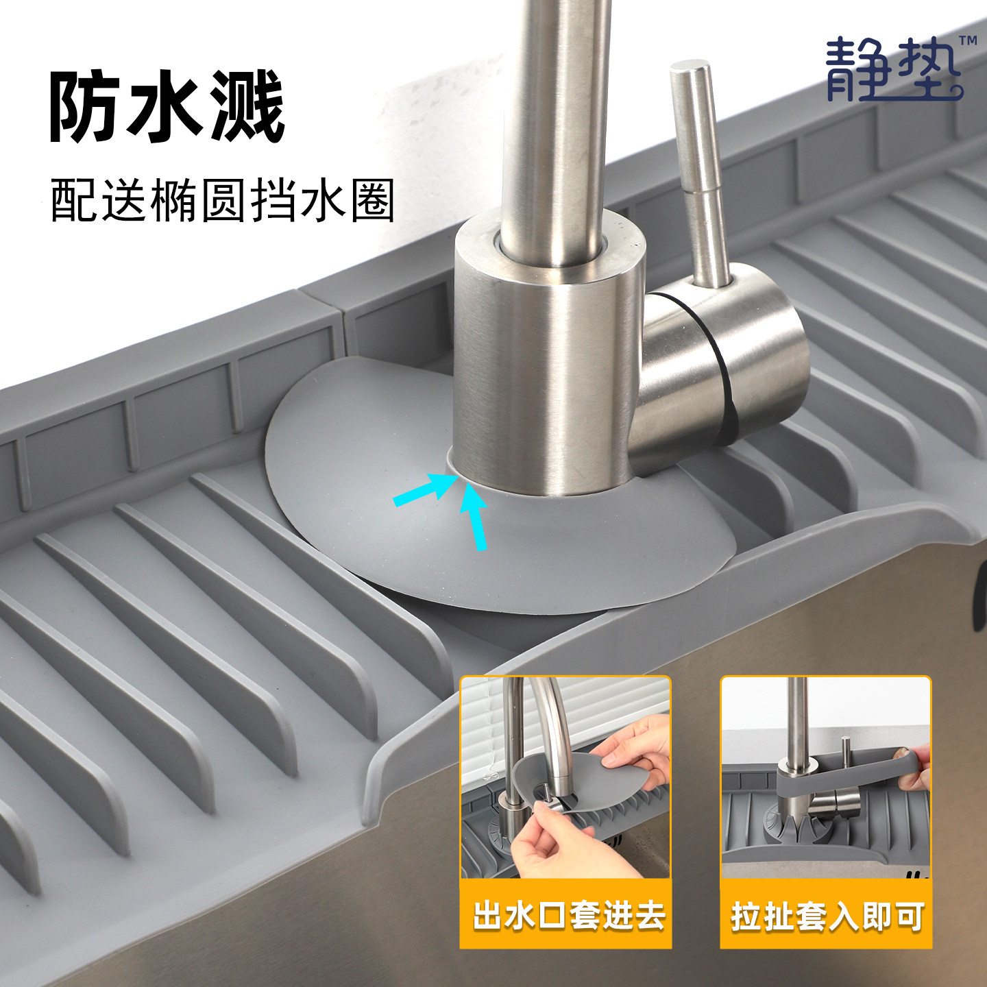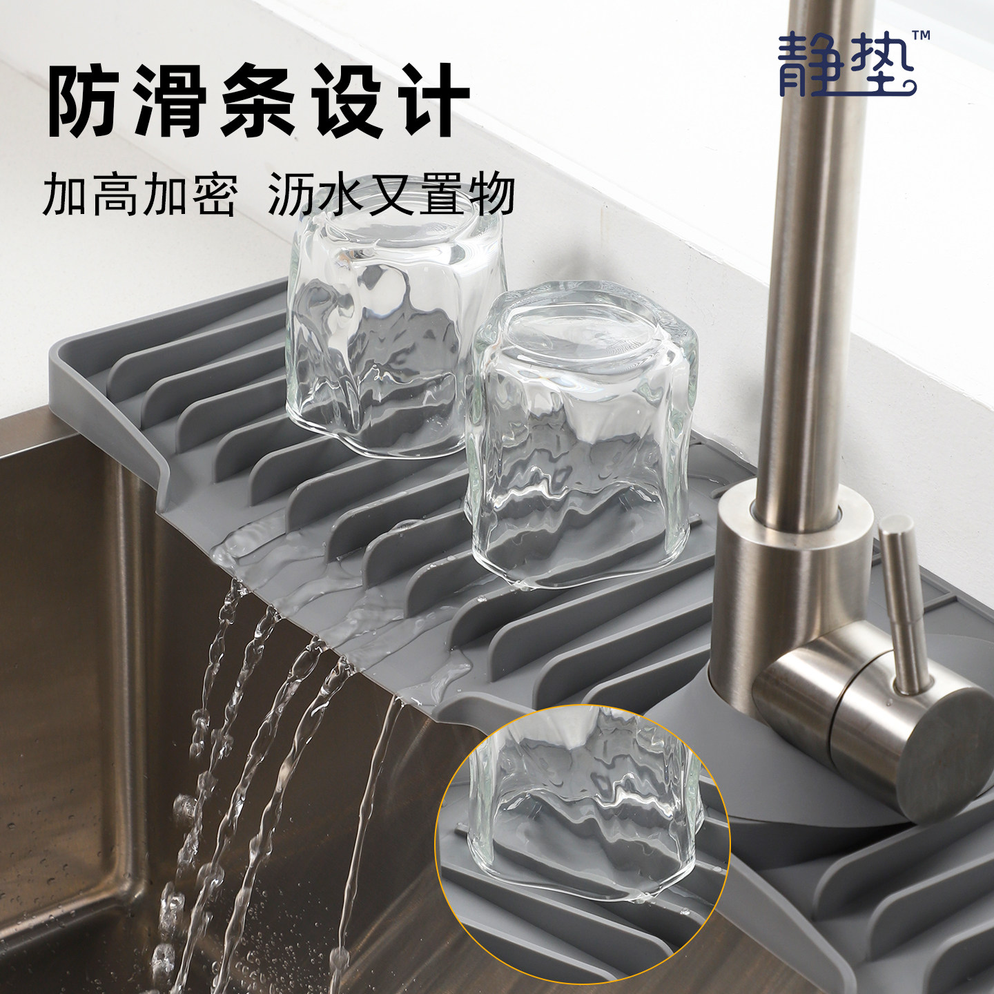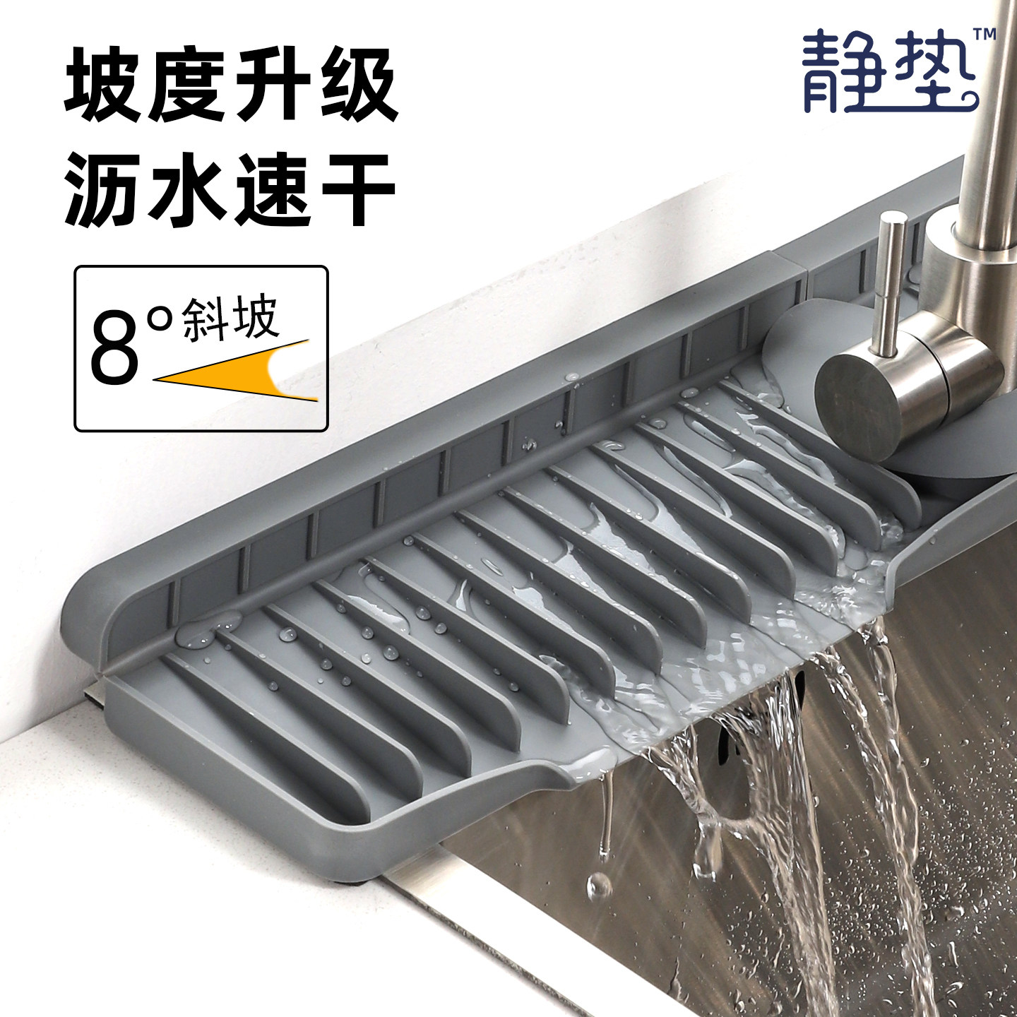 📚 厨房水龙头沥水垫水槽斜坡硅胶垫台面防溅水滤水垫加长浴室接水垫