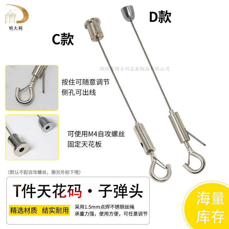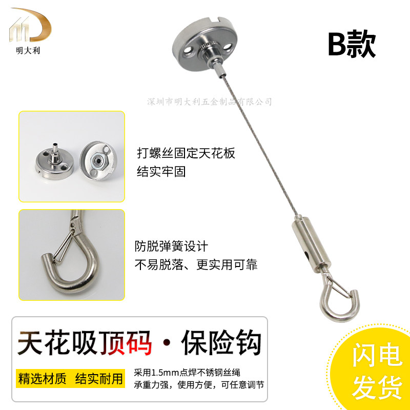 📚 钢丝绳吊线可调节锁线器挂钩广告牌展览挂画吊绳灯具吊绳吊件