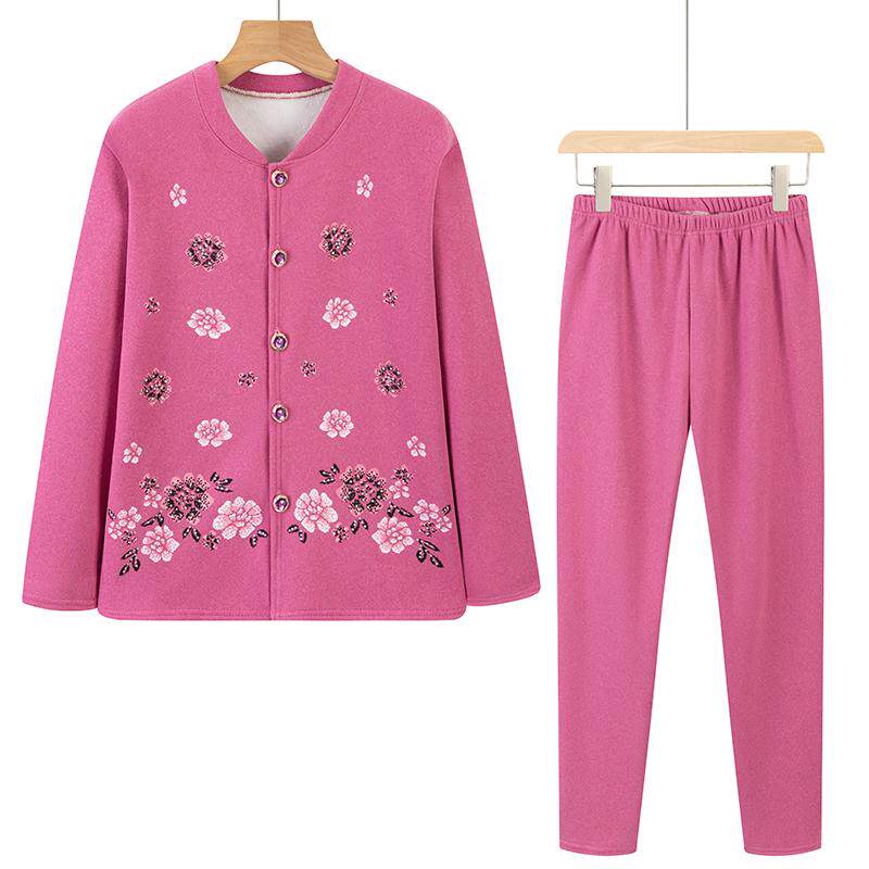 📚 2024新中老年保暖衣加绒加厚开衫女奶奶冬装妈妈开襟太太秋衣秋裤